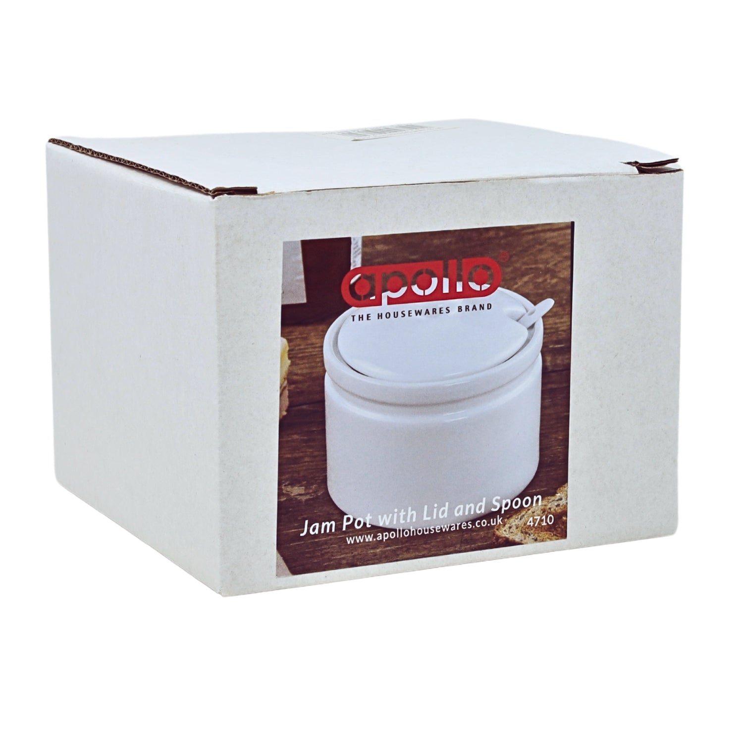 Add a touch of elegance to your table with this classic ceramic jam pot featuring a matching lid and spoon slot. Designed to keep your jams, honey, sugar, or condiments fresh.