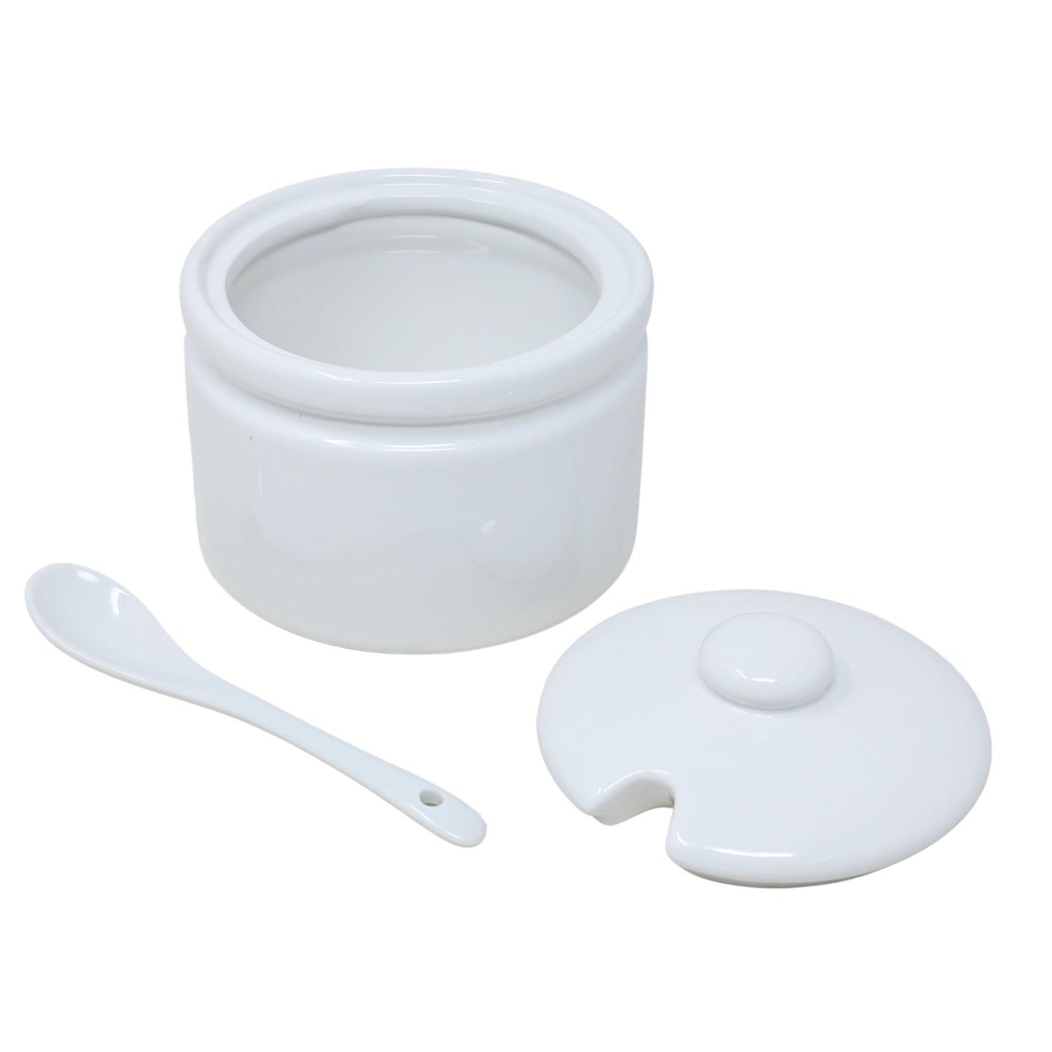 2Pcs Ceramic White Round 400ml Jam Pot With Lid & Spoon