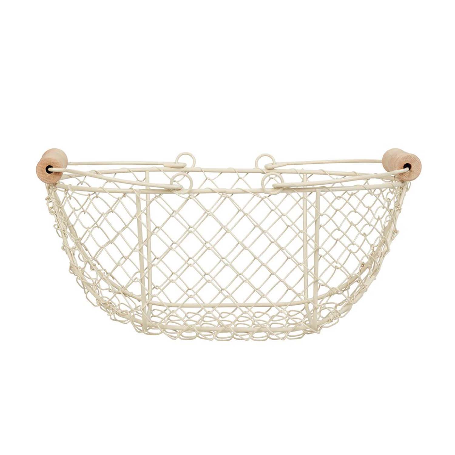 - Oval-shaped wire basket design in a cream colour with a rustic Easter theme.