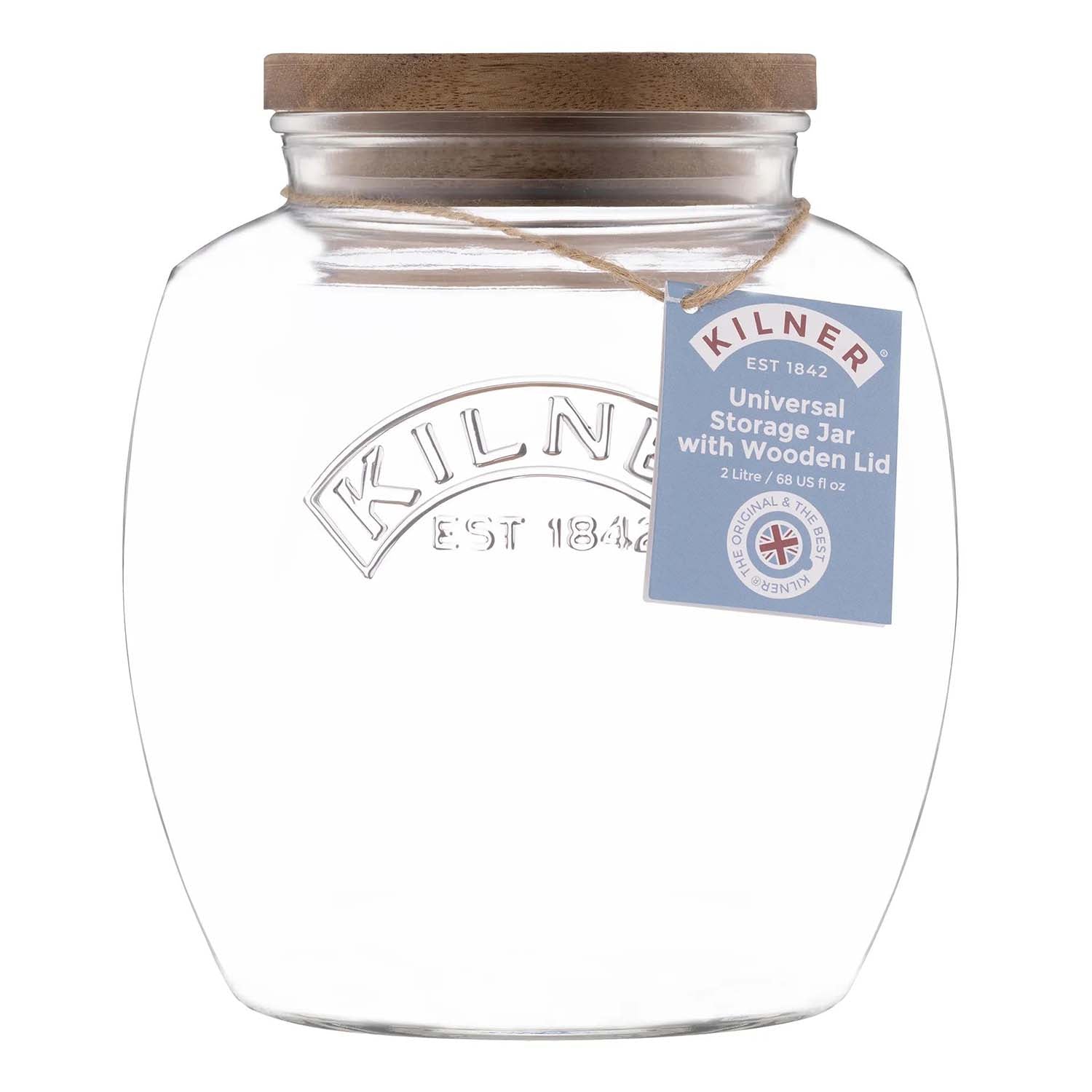 2Pcs Kilner 2L Wooden Push Top Lid Airtight Glass Jars