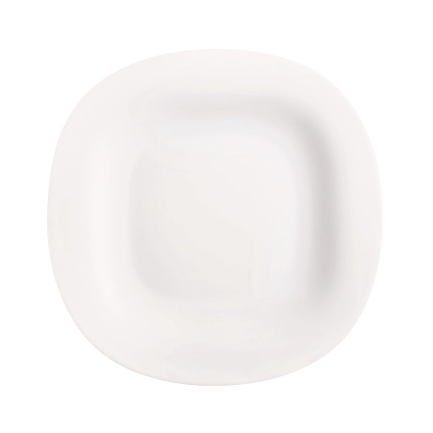 - Modern square shape with rounded edges in a minimalist white design.