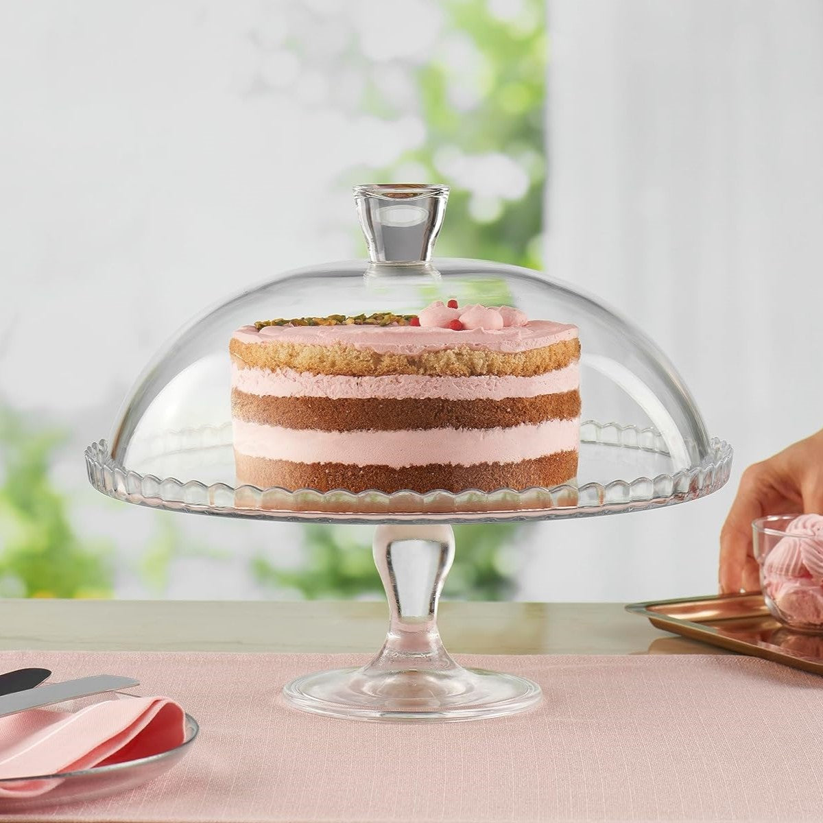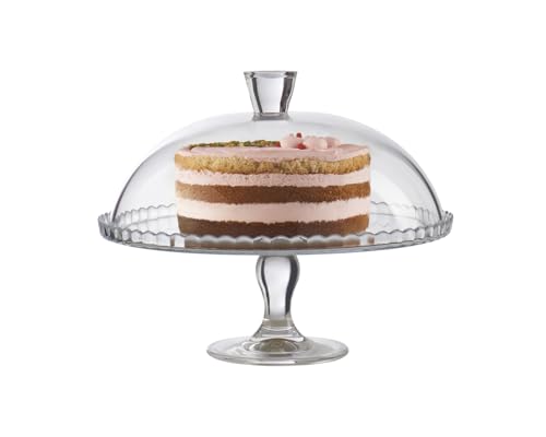 2Pcs Pasabahce Glass Cake Stand With Dome Lid