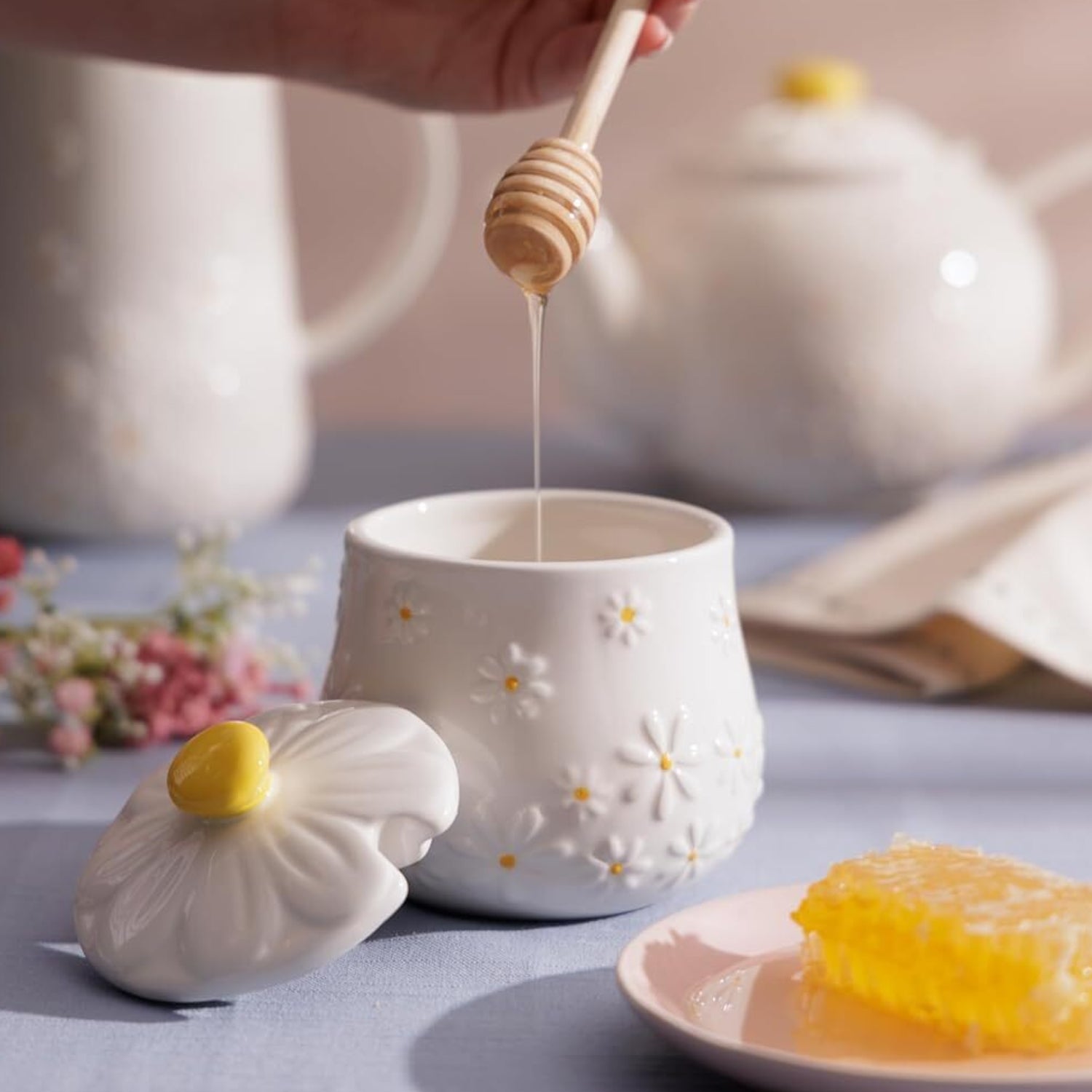 2Pcs Price & Kensington Daisy Honey Pot & Drizzler Set