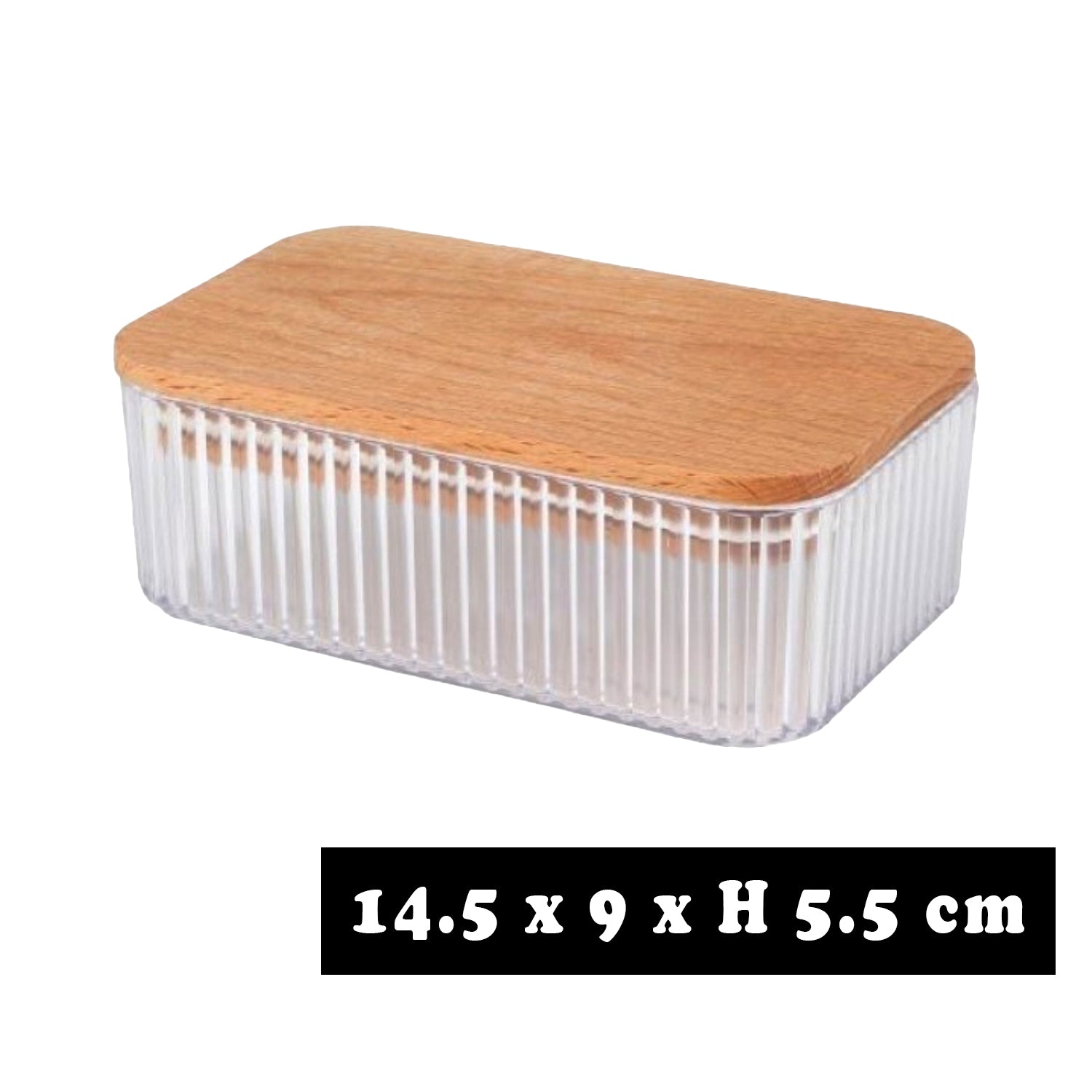 - Design: Transparent ribbed texture with a smooth wooden lid for an elegant touch.