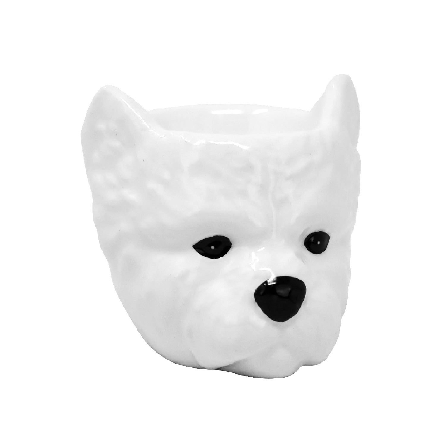 2Pcs White Ceramic Westie Head Egg Cups