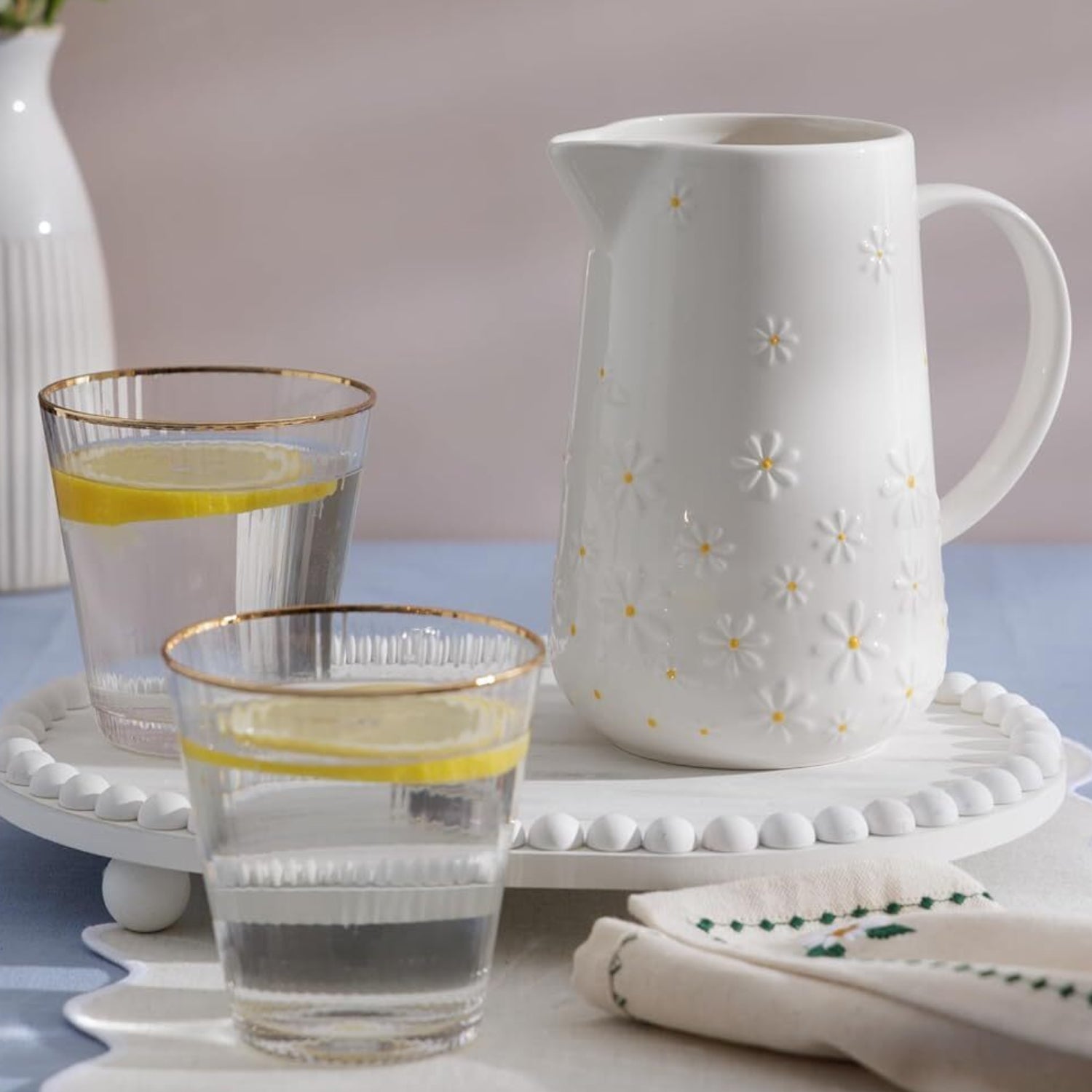 Add a touch of charm to your table or kitchen decor with this delightful Price & Kensington 2-piece Daisy jug set. It features an embossed daisy design accented with cheerful yellow centres for a bright, summery feel.