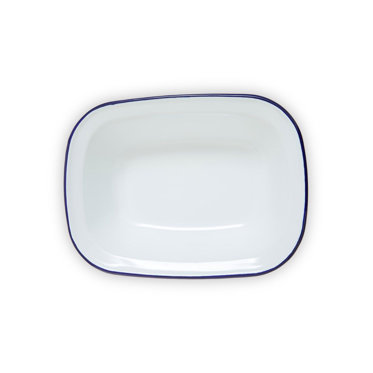 3-Set Rectangle White Enamelled Steel Pie Dish - Navy Blue Rim 22/24/26 cm