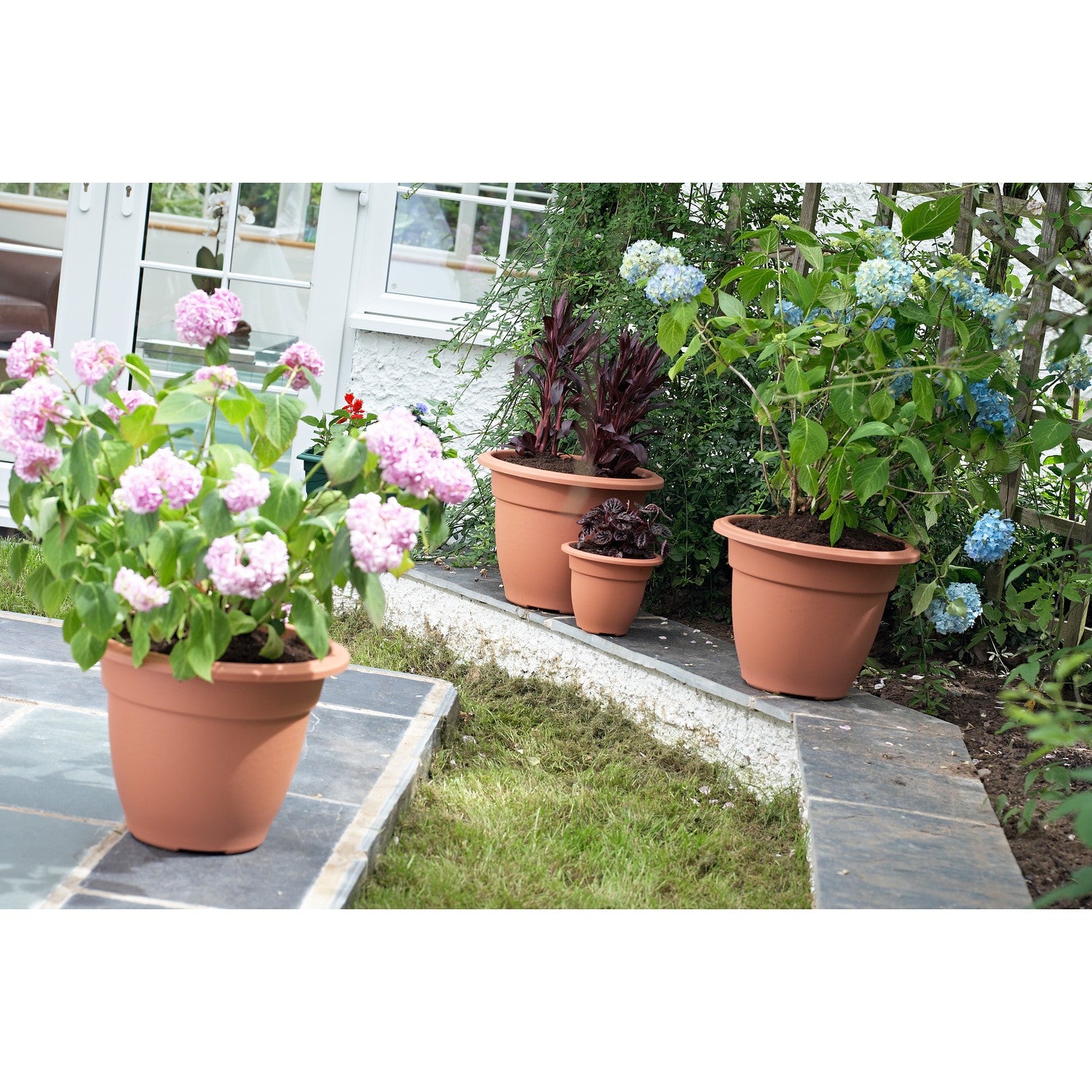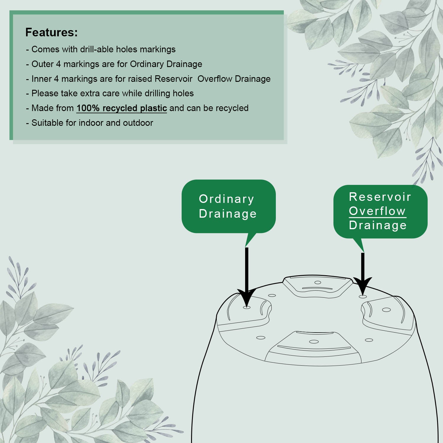 Heavy Duty Plastic, Made in UK, Round Bell Pot design, For outside or inside use, comes with pierce drainage holes.