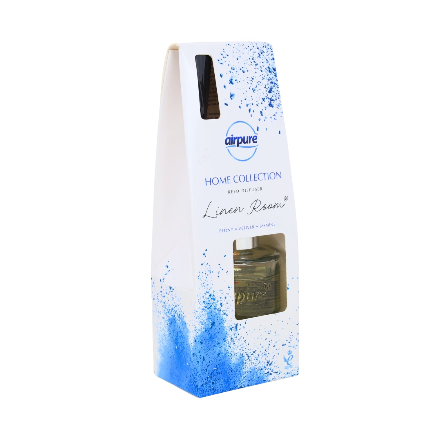 The Airpure Reed Diffuser Linen Room is a stylish, flameless home fragrance solution, designed to continuously release a light, clean scent into your living spaces. The fragrance blends peony, vetiver, and jasmine for a fresh “linen” aroma that evokes the crisp, clean scent of a well-kept home.
