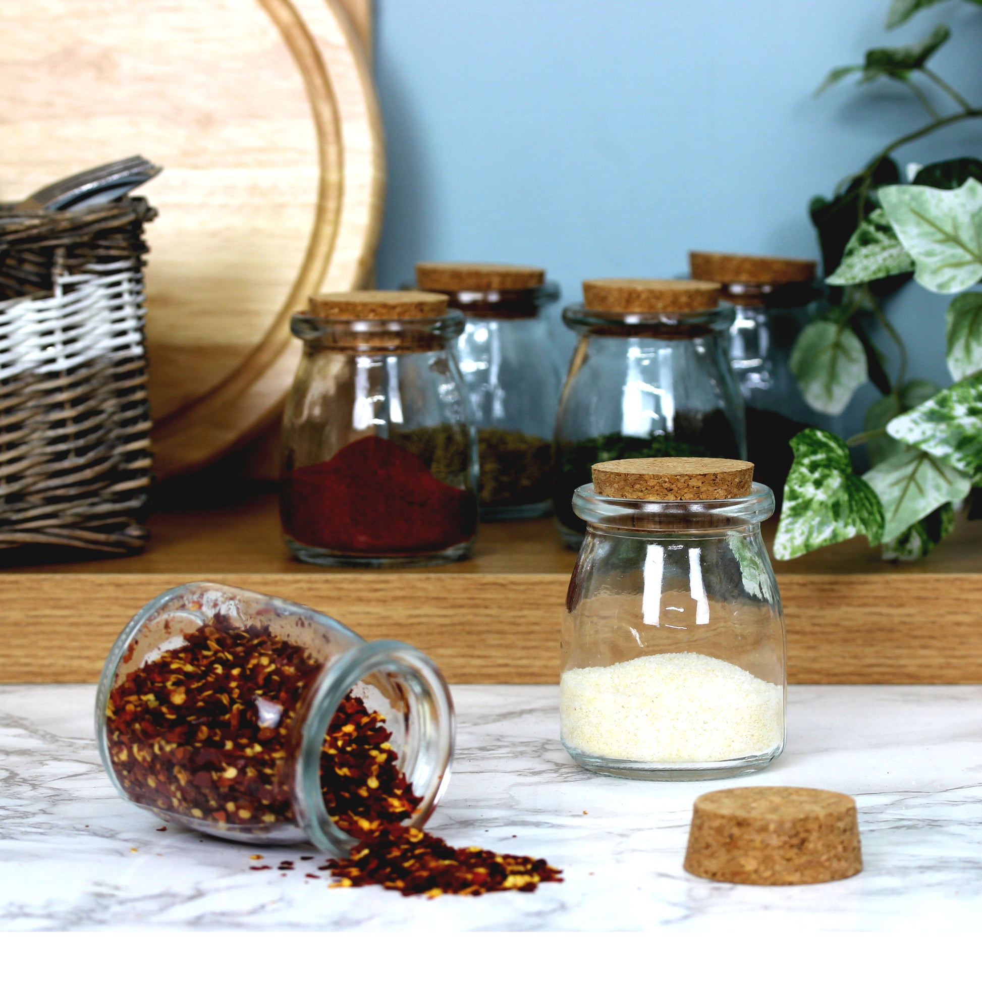 Made from robust glass, this set of 30 large storage jars can be used to store a variety of kitchen items. Each wide-mouthed jar has a cork stopper which will keep contents fresh for longer and preserve odours.