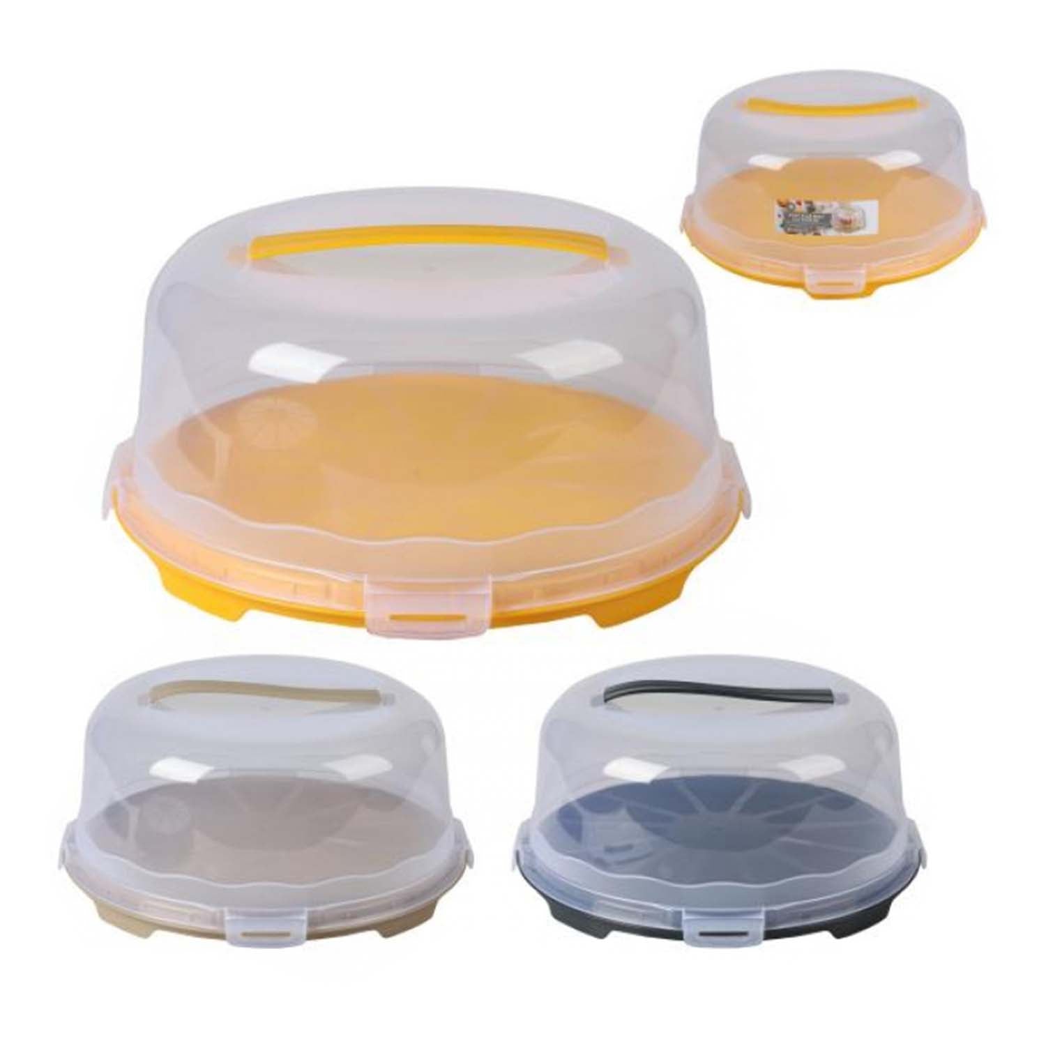 Transport your cakes in style with this Round Plastic Cake Carrier. Featuring a stylish brown base and a clear snap-type lid with a matching coloured handle, this reusable carrier is both functional and stylish. It can accommodate cakes up to 28cm in diameter and 10cm in height. The secure snap closure ensures your baked goods stay safe during transport, while the lightweight design makes it easy to carry to parties, picnics, and gatherings.