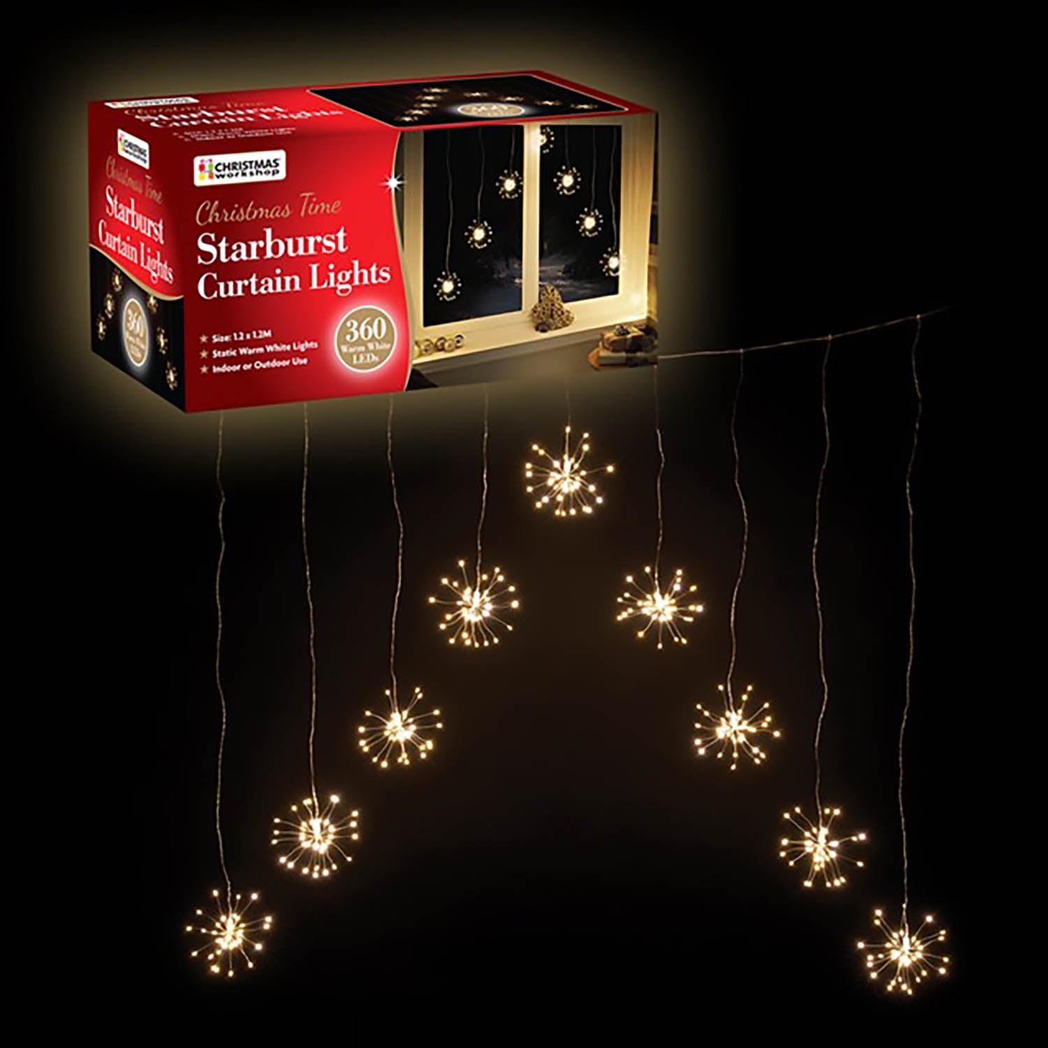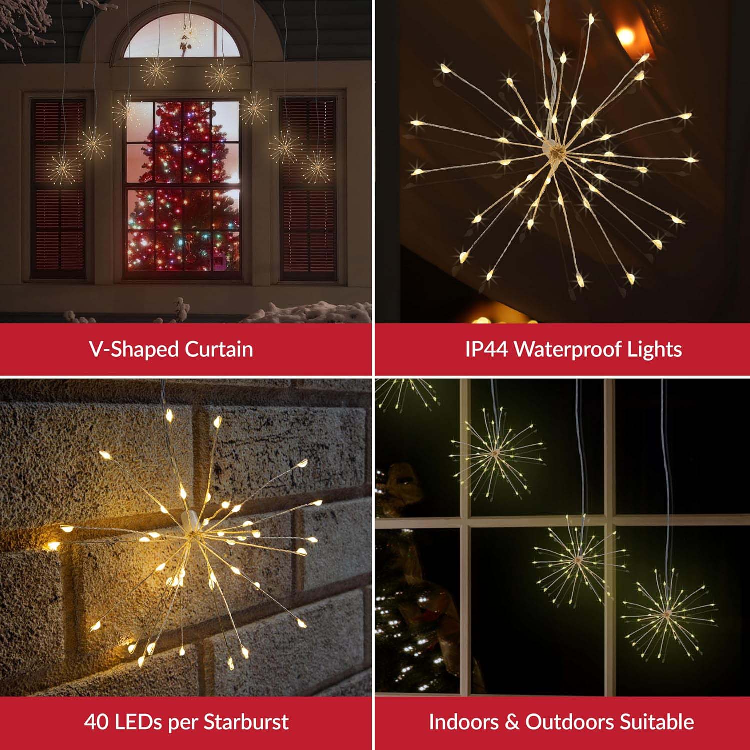 360 Warm White LED Christmas V-Shape Starburst Curtain Light