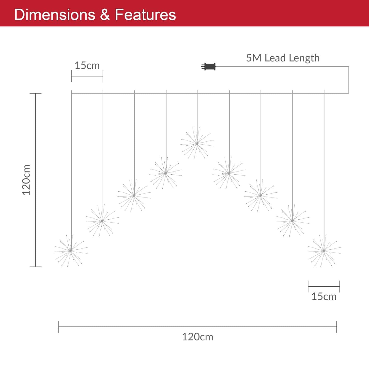 - 9PC Starburst, 40LED per copper wire ball, 2LED per copper wire and has Static Function.