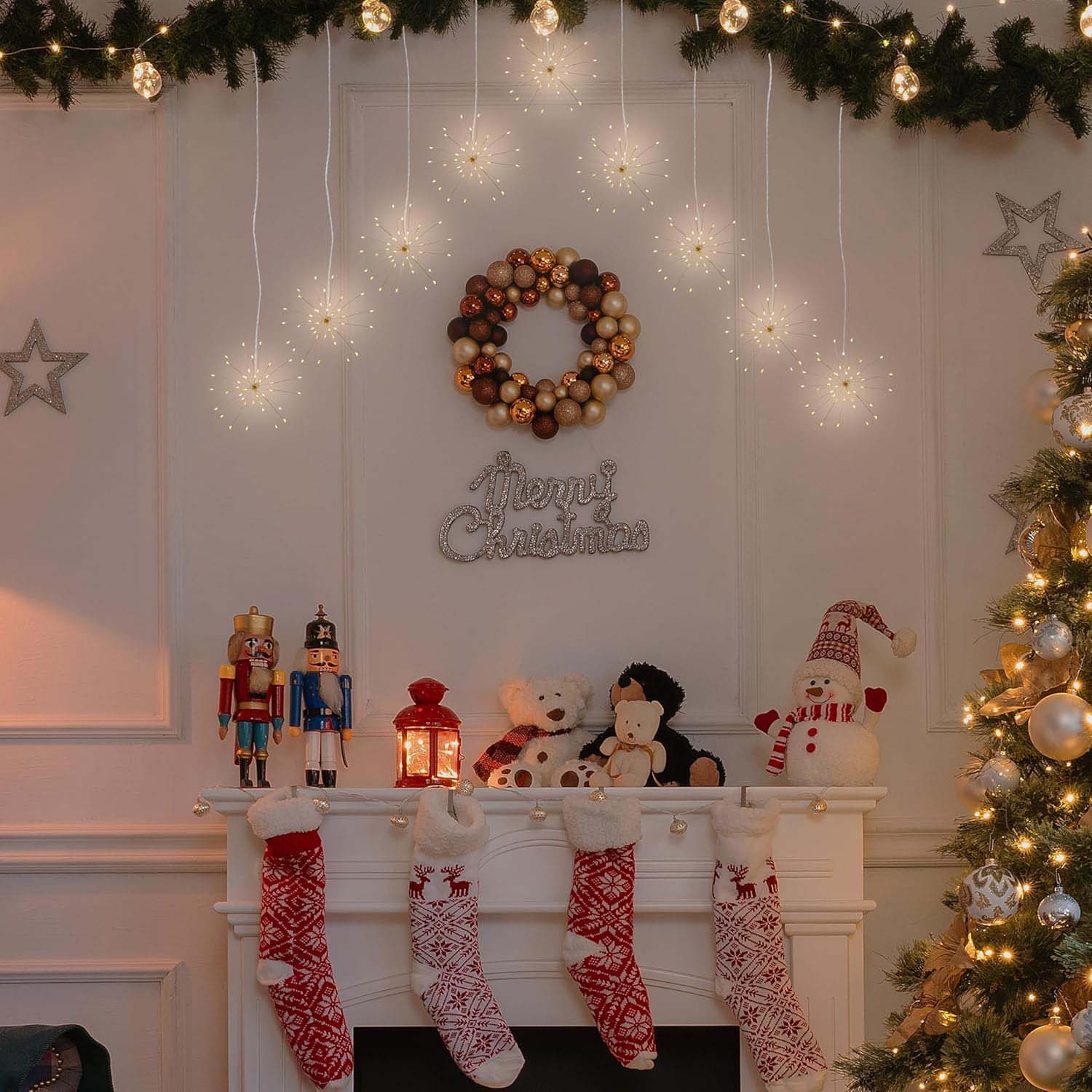 Create a shining appearance that will grab everyone's attention on all occasions! This 360 LED V-shaped starburst curtain light warm white will add charm to your home.