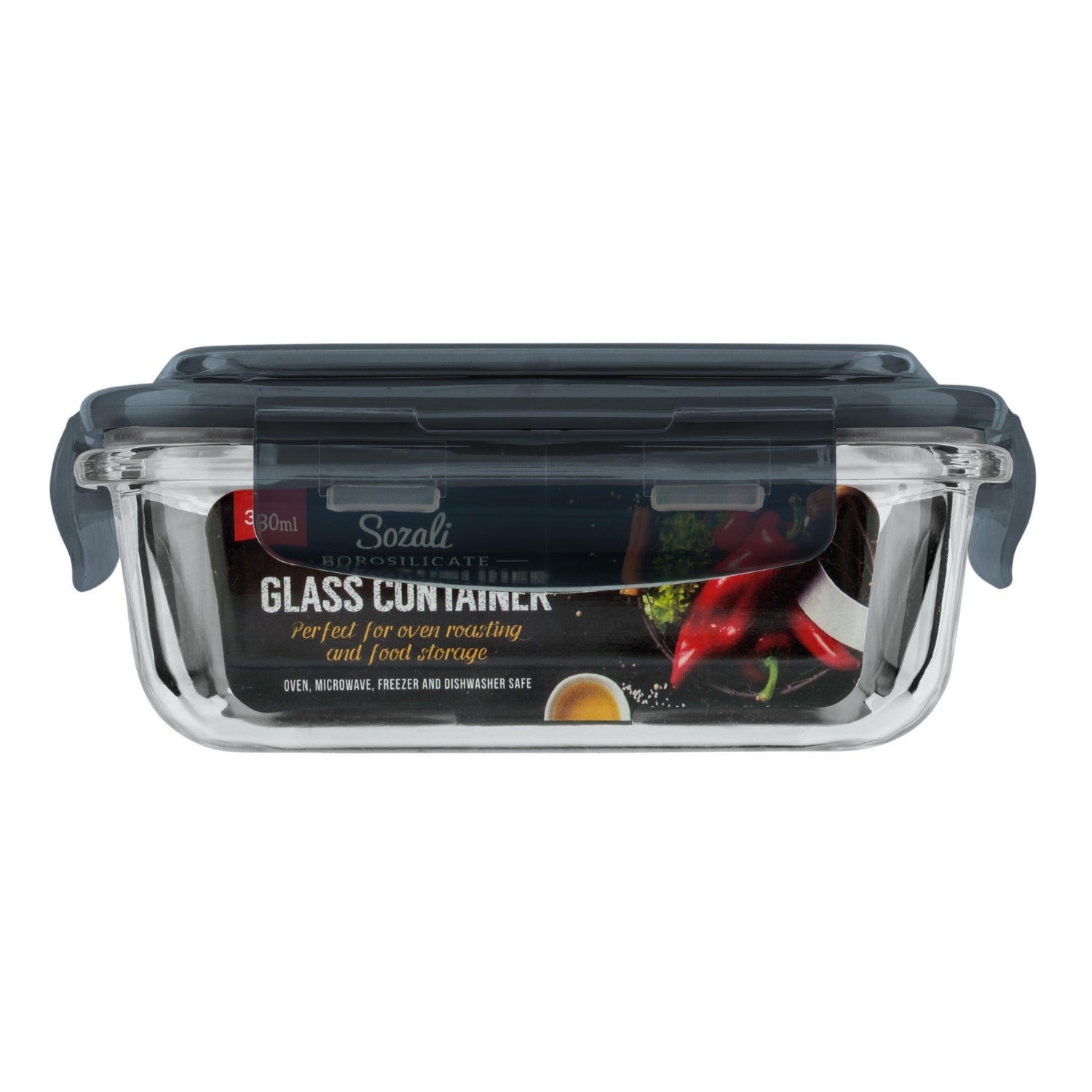 This 380ml Glass Clip Lock Container by Sozali is designed for home kitchen storage. With its clear glass body and secure clip-lock lid, it offers an airtight environment for keeping dry foods fresh and organised. It’s perfect for oven roasting, storing leftovers, meal prep or packed lunches.