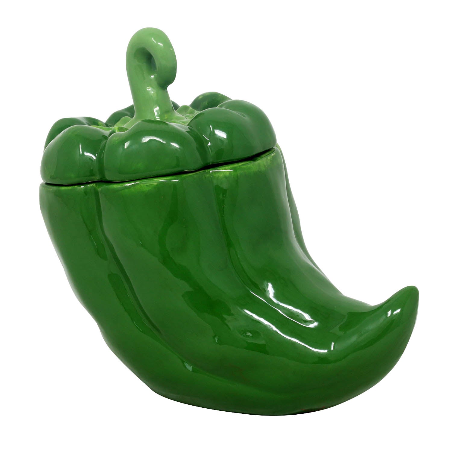 Add a playful touch to your kitchen with this ceramic green chili-shaped jar. Standing 15cm tall, this 3D novelty jar features a vibrant glossy finish and sculpted details, perfect for storing dry items or simply as a decorative centerpiece. Not microwave or dishwasher safe.