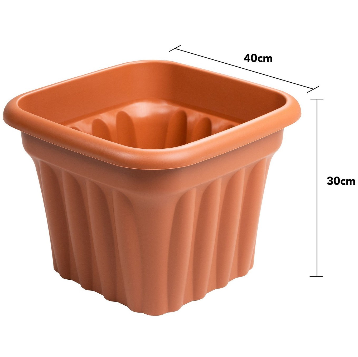 Traditional square planter in terracotta colour. This lovely planter can be used for indoor plants or to brighten up your patio / garden. Its an ideal plant pot as the pot will not discolour.