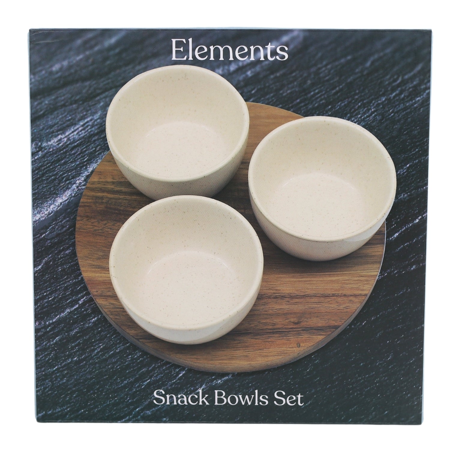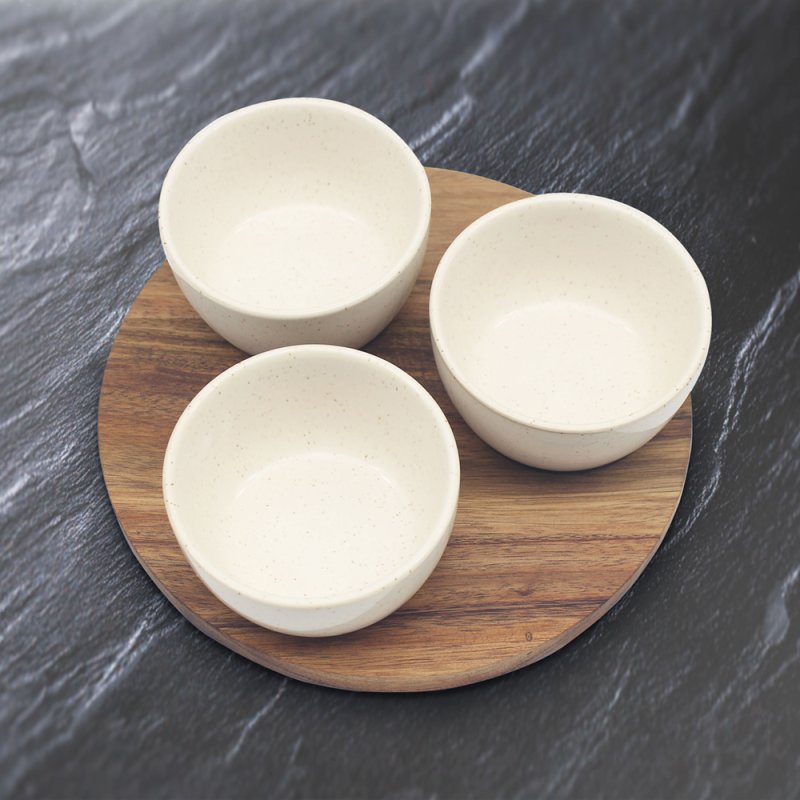 3Pc Round Snack Bowls With Round Wooden Tray Serving Set