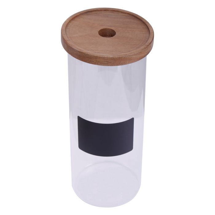 - Airtight Wooden lid keeping moisture away from the food. Wide neck for easy access to the inside of the glass.
