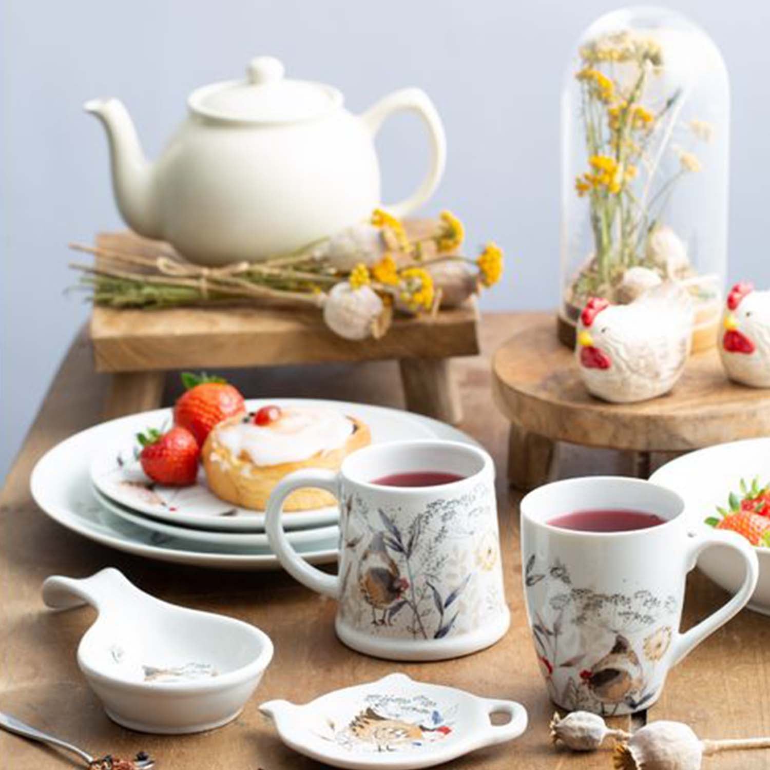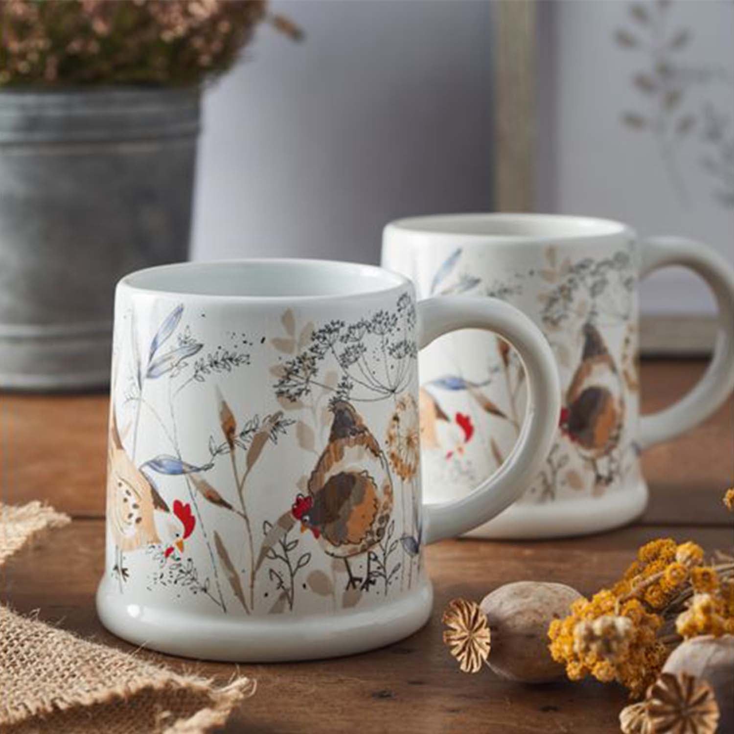 Enjoy your morning coffee in style with this charming 3pc white footed coffee mug set, crafted from durable ceramic and adorned with a country hen's design. With a generous 385 ml capacity, these mugs are perfect for larger servings of your favourite hot beverages, whether it’s coffee, tea, or hot chocolate. Perfect for everyday use or as a thoughtful gift.