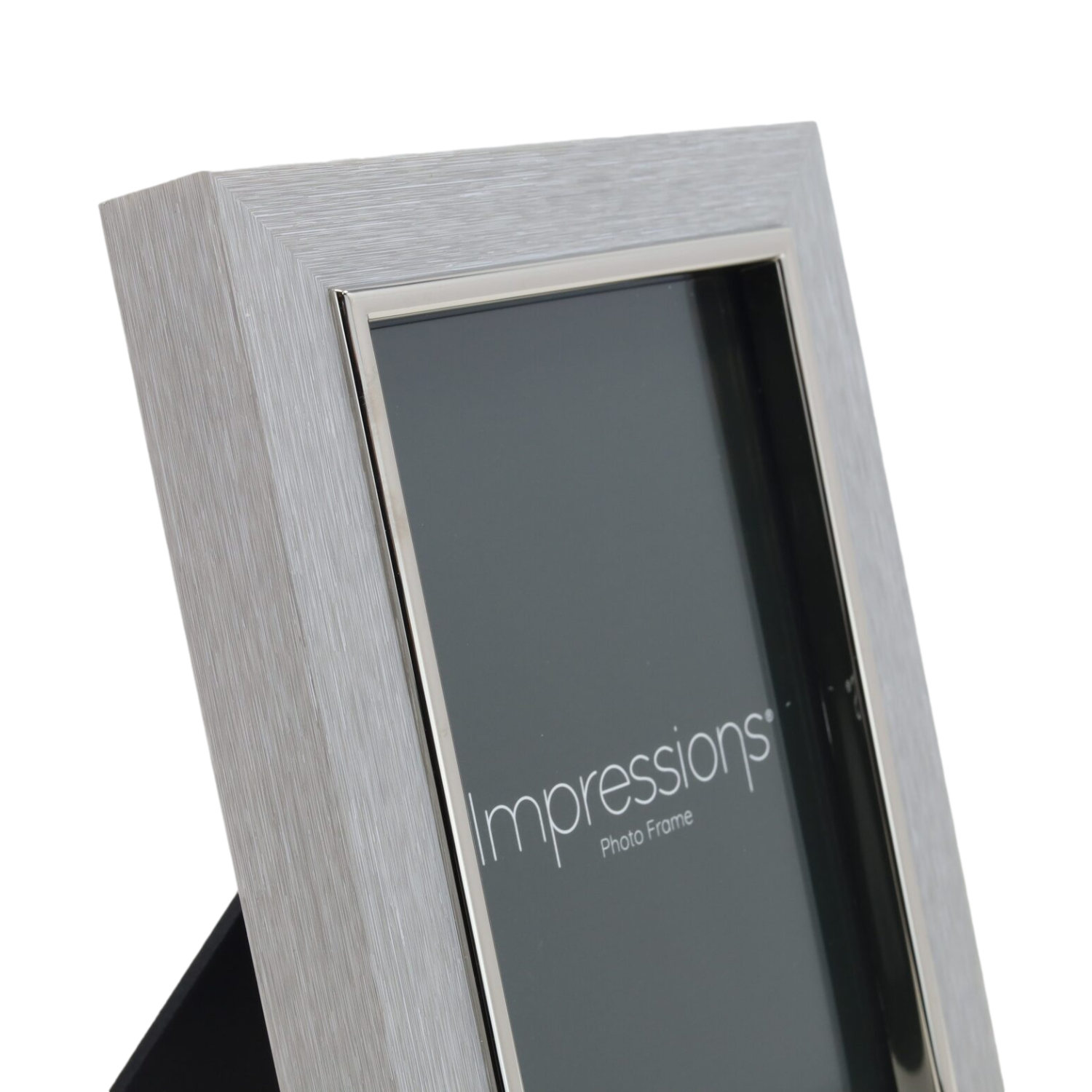 - Stylish 4x6 inch photo frame in a grey faux wood effect and silver frame finish