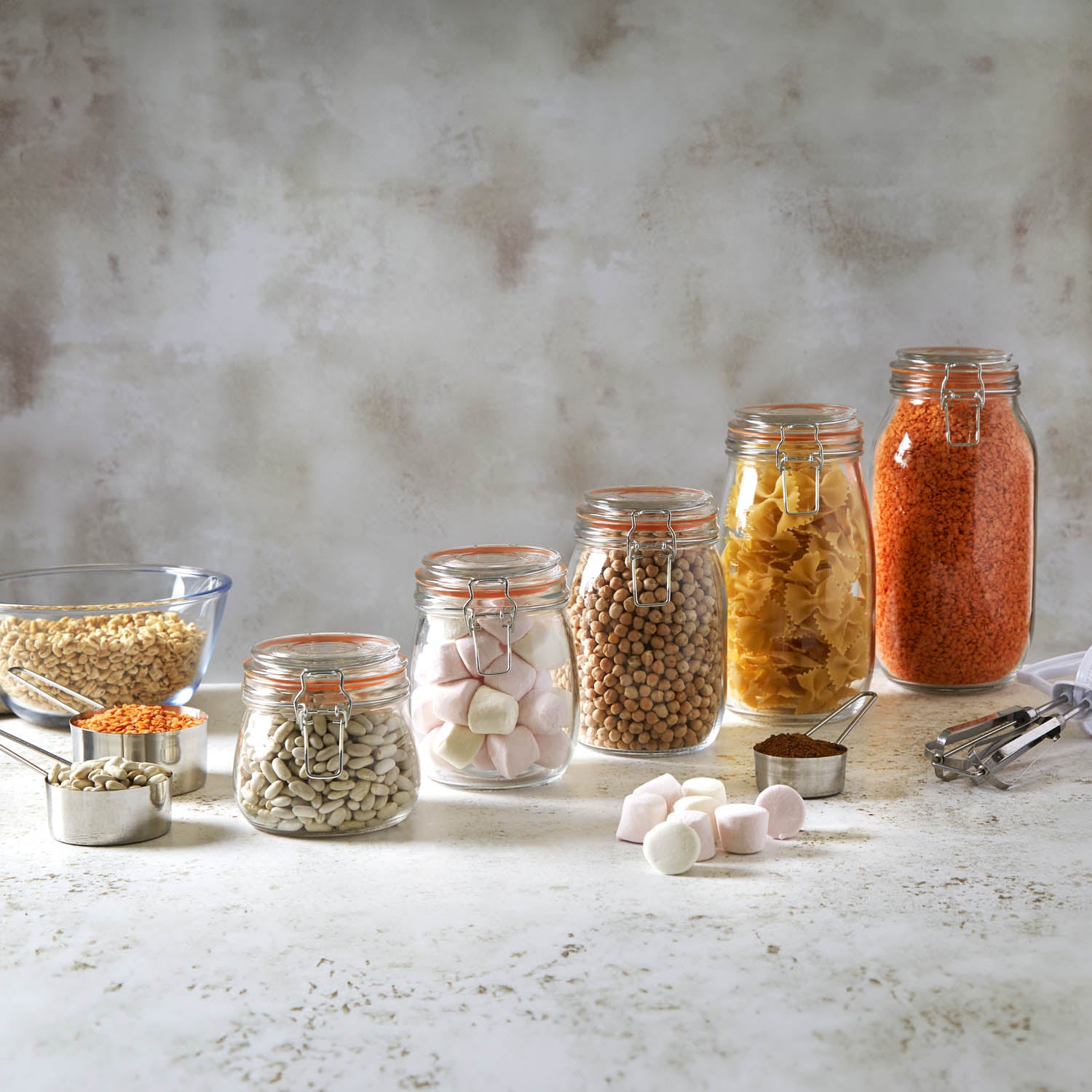 The Food Storage Jars help keep all your favourite foods, preserves and kitchen essentials fresher for longer while bringing a hearty helping of rustic, vintage farmhouse style and charm to any interior.