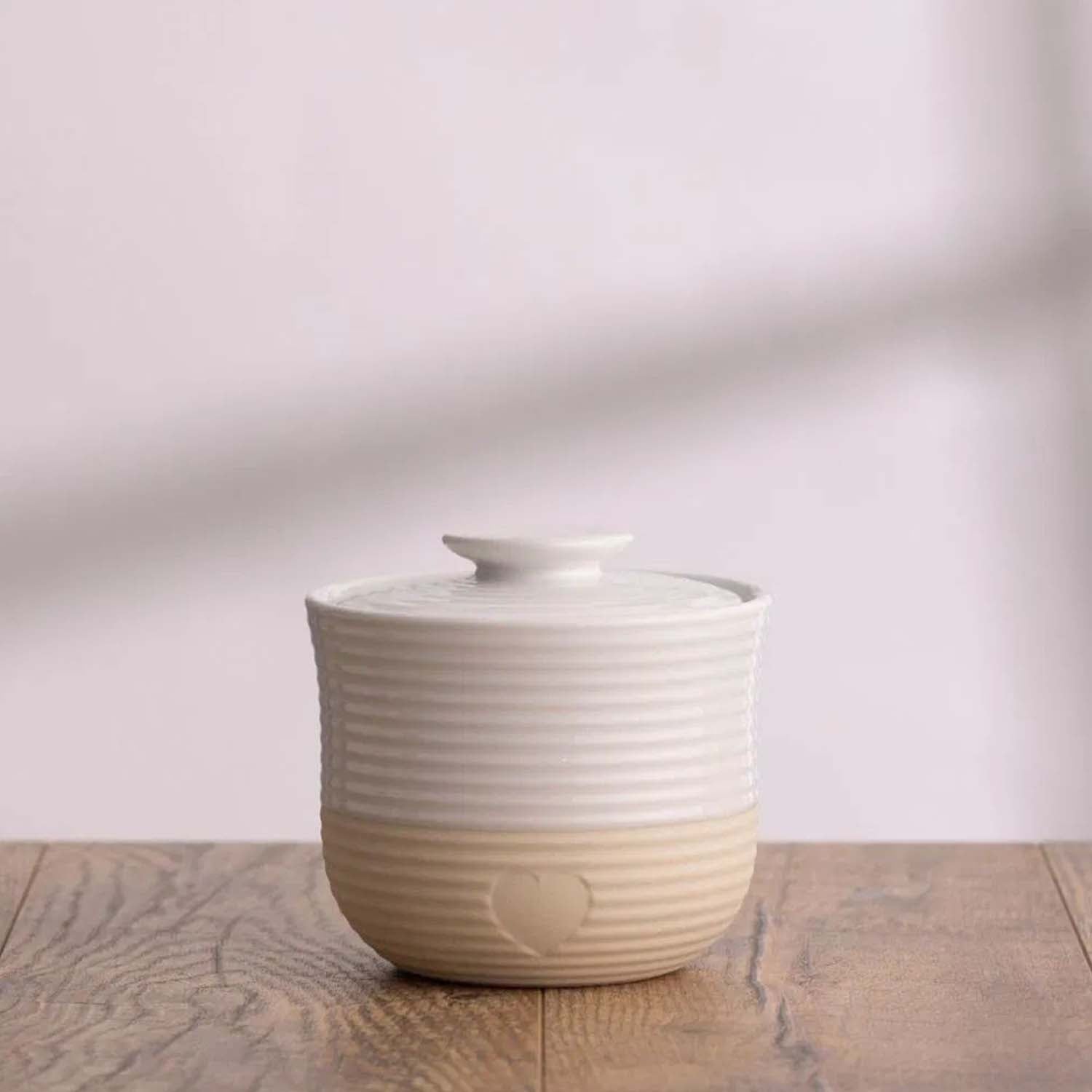 Organize your kitchen with this elegant 3pc stoneware storage jar set, featuring a subtle debossed heart motif. Designed in neutral tones and showcasing a blend of matt and gloss finishes, these jars add understated charm to any countertop. With a compact yet functional 700ml capacity, this 700ml stylish jar set is perfect for modern kitchens. Handwash only to preserve its high-quality finish.