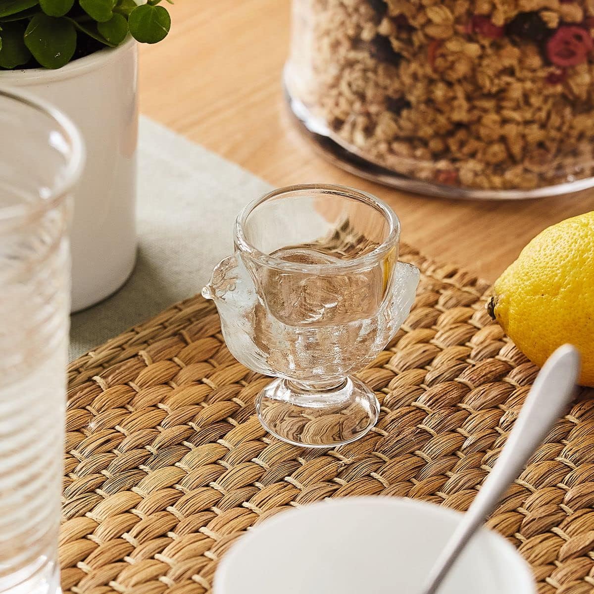This charming glass egg cup features a unique bird-shaped design, adding a whimsical touch to your breakfast table.