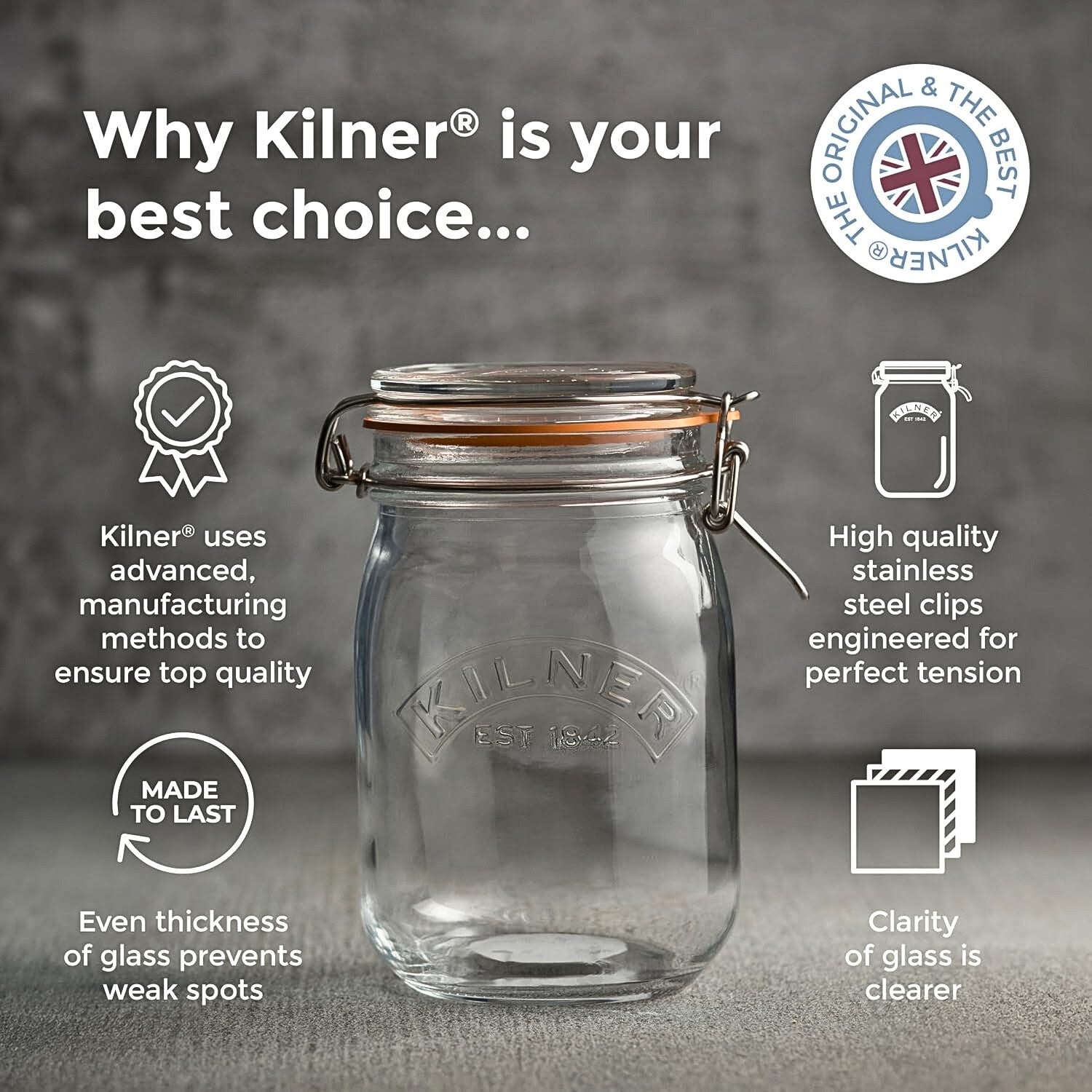 3pcs Kilner 1L Vintage Glass Clip Top Storage Jars