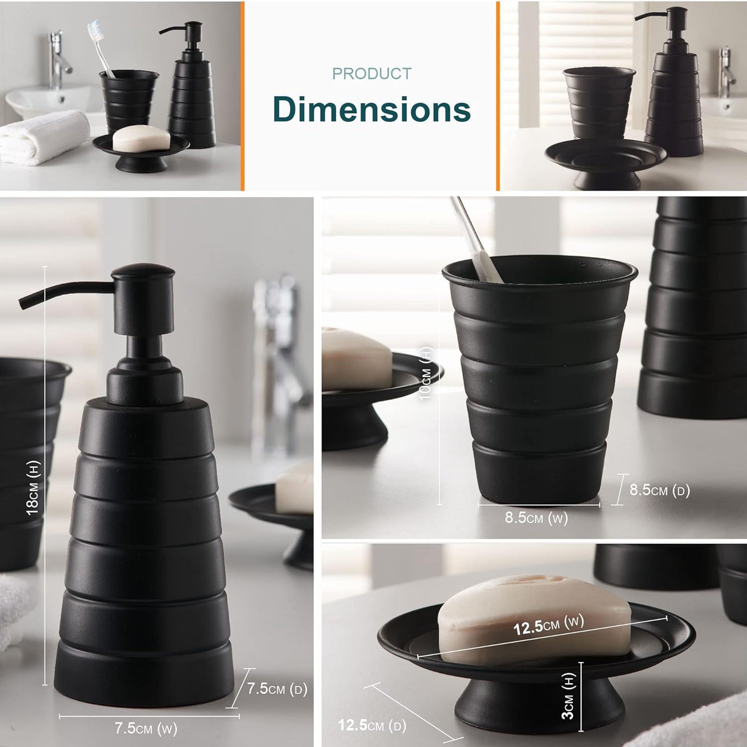 3Pcs Toothbrush Holder Soap Dispenser Soap Dish Bathroom Caddy Set Black
