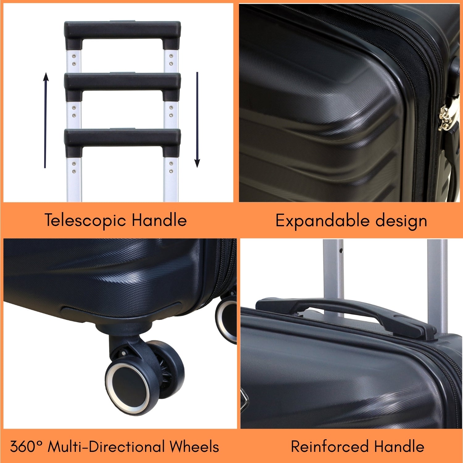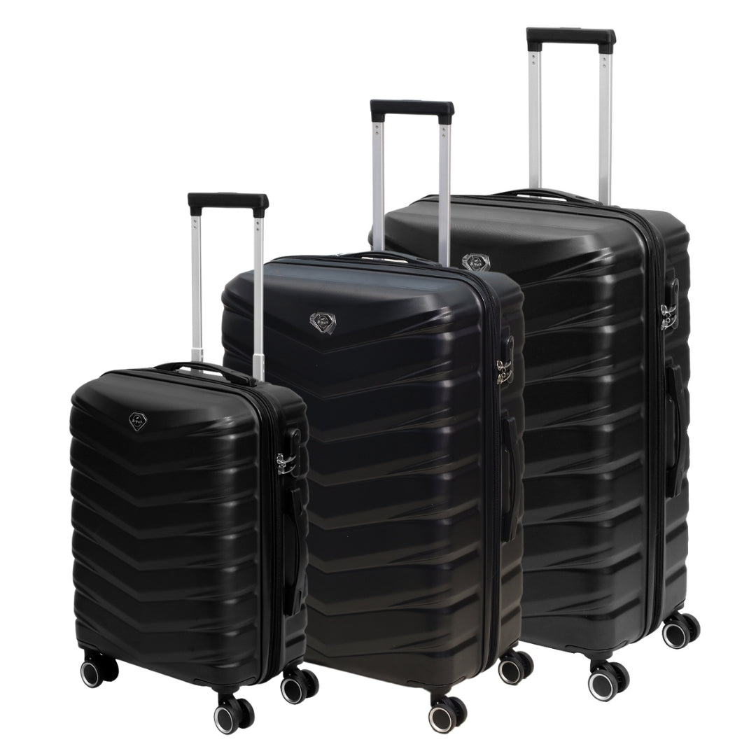 3PCS Travel Suitcase Denver Black Expandable ABS Luggage