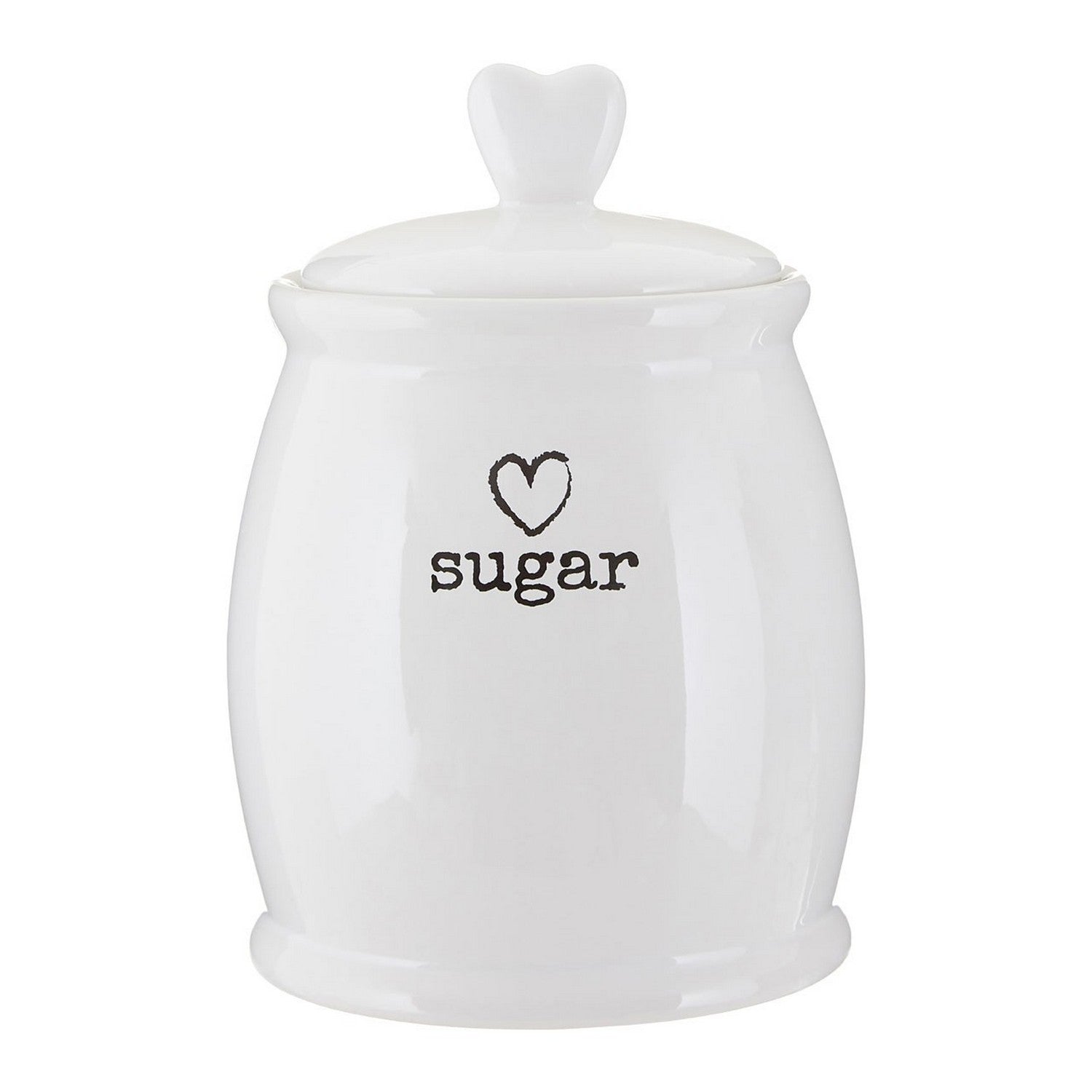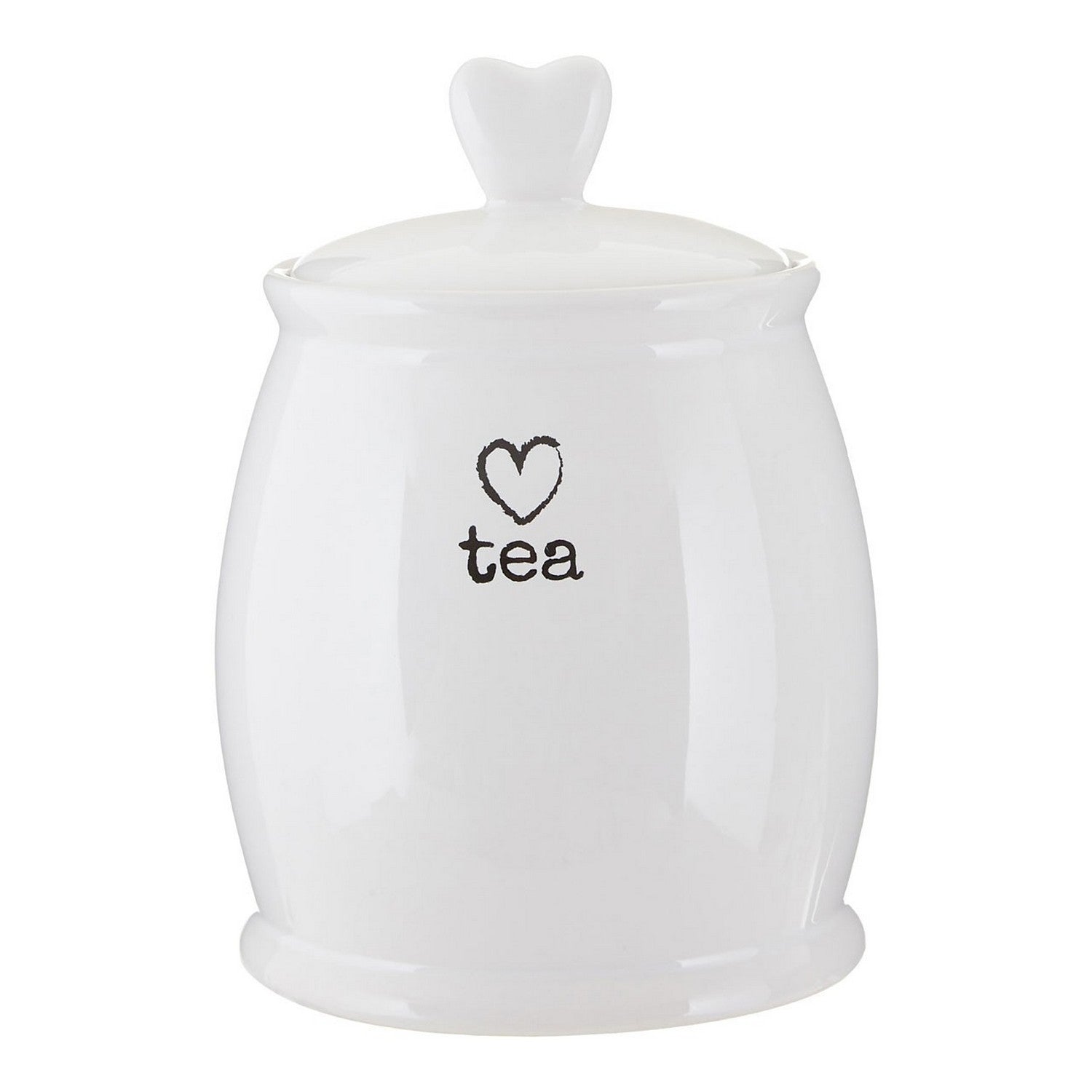 Add a heartfelt accent to the kitchen, made from strong dolomite, its glazed finish gives it a glossy look and makes it silky smooth to the touch. The black heart graphic is presented clearly against the white surface, with a heart-shaped handle on the snug lid adding a further decorative touch. A set of tea, coffee, and sugar canisters.