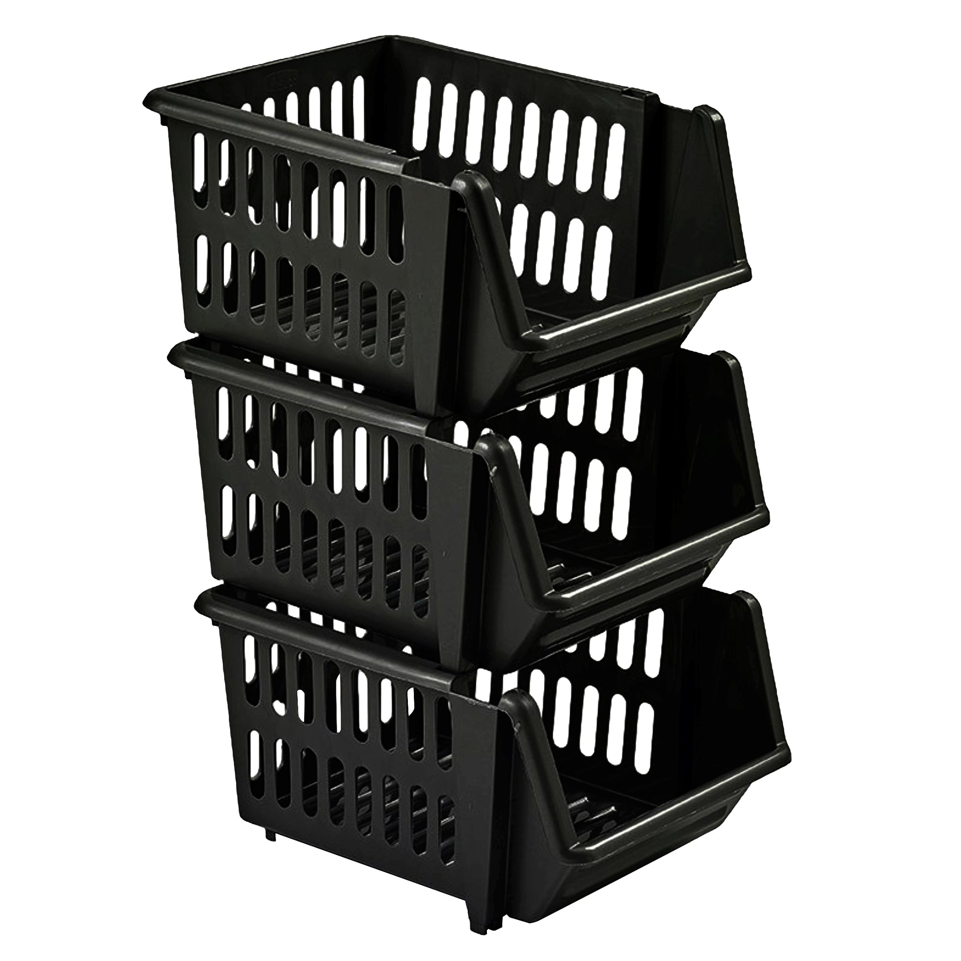 3Tier Stackable Fruit Vegetable Basket Plastic Black