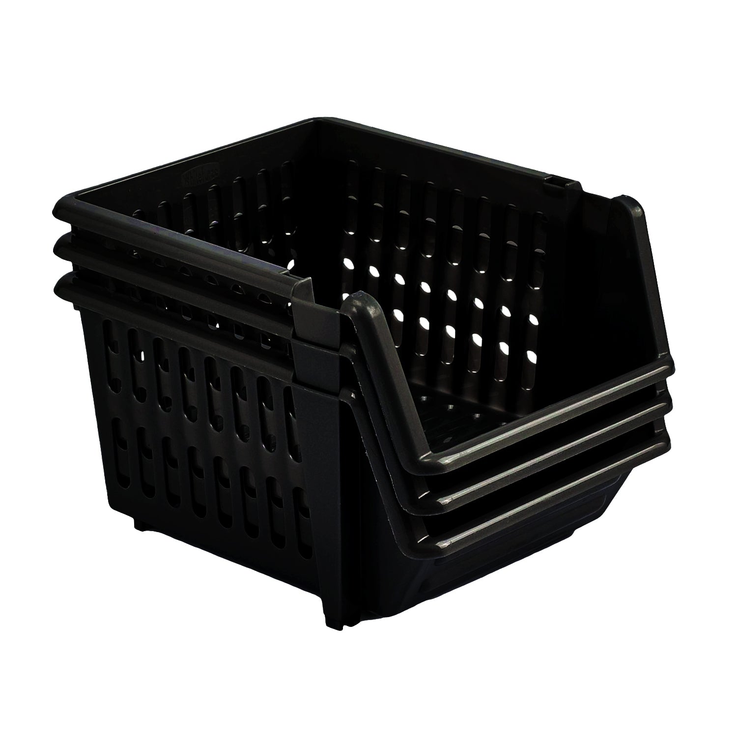 Set of 3 stackable baskets ideal for saving space in your kitchen or pantry for different items.
