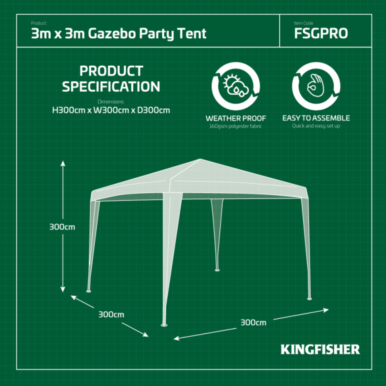 - Approx Size: Length 300 cm, Width 300 cm, Height 300 cm