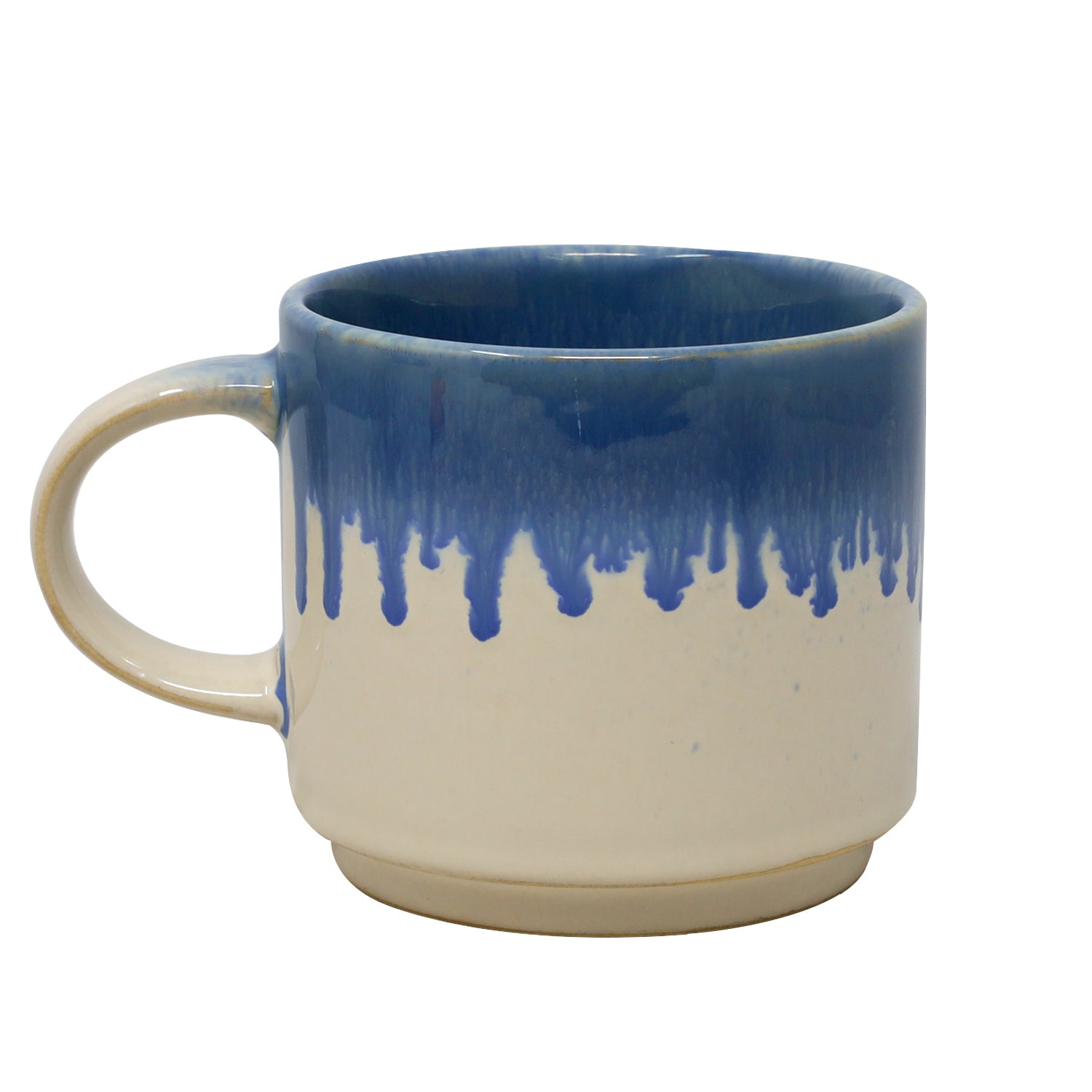 400ml Two-Tone Blue Cream Reactive Glaze Coffee Mug