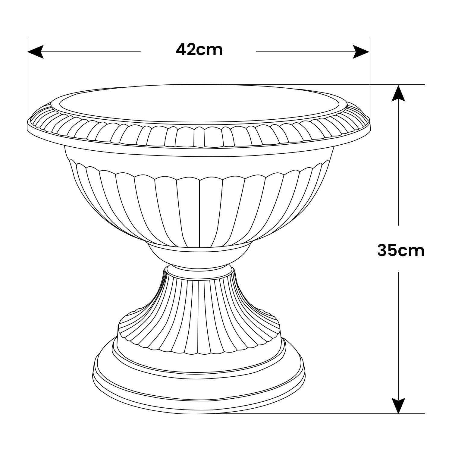 - Approx Dimensions: Diameter: 42cm, Inside Diameter: 34cm Height:35 cm