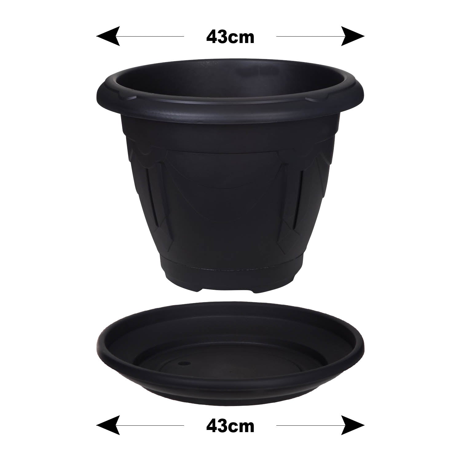 43cm Black Venetian 21L Planter & 43cm Round Saucer Set