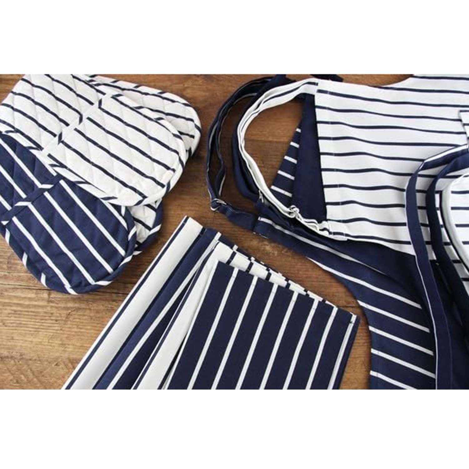 - Elegant blue & white striped pattern adds a classic & stylish touch to your kitchen.