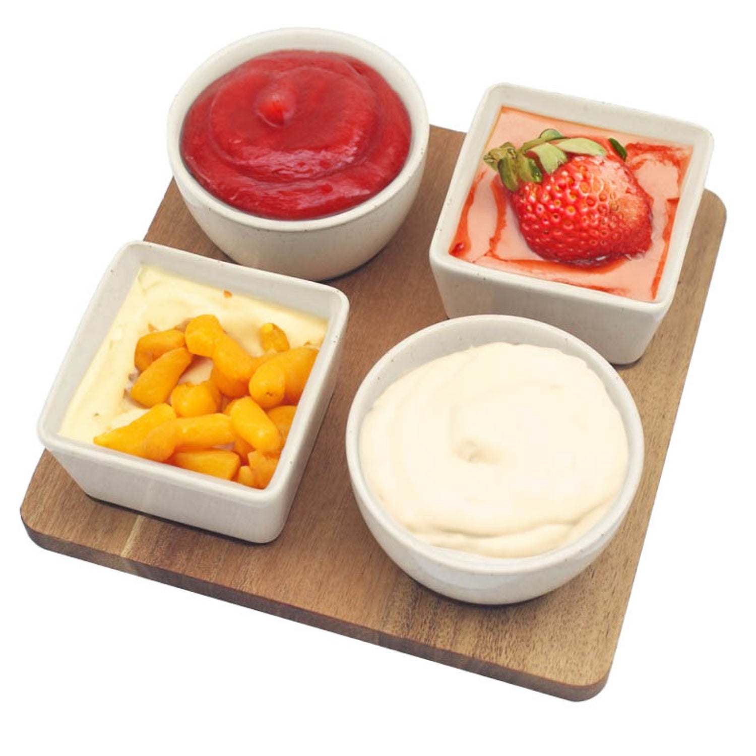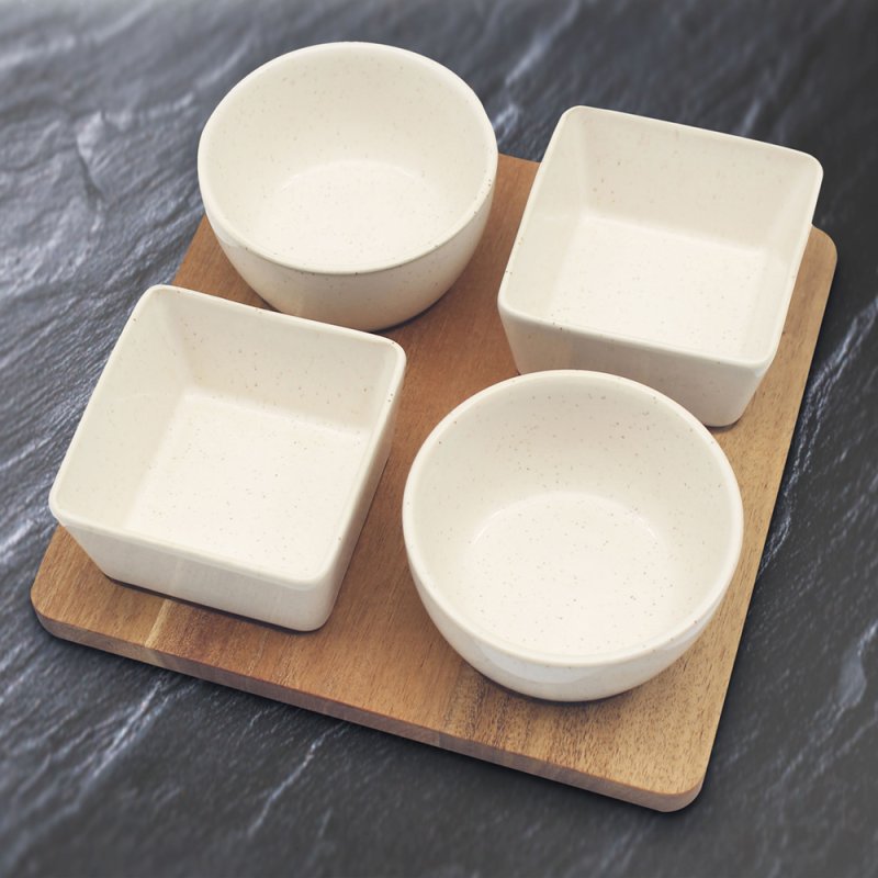 4Pc Snack Bowls With Square Wooden Tray Serving Set