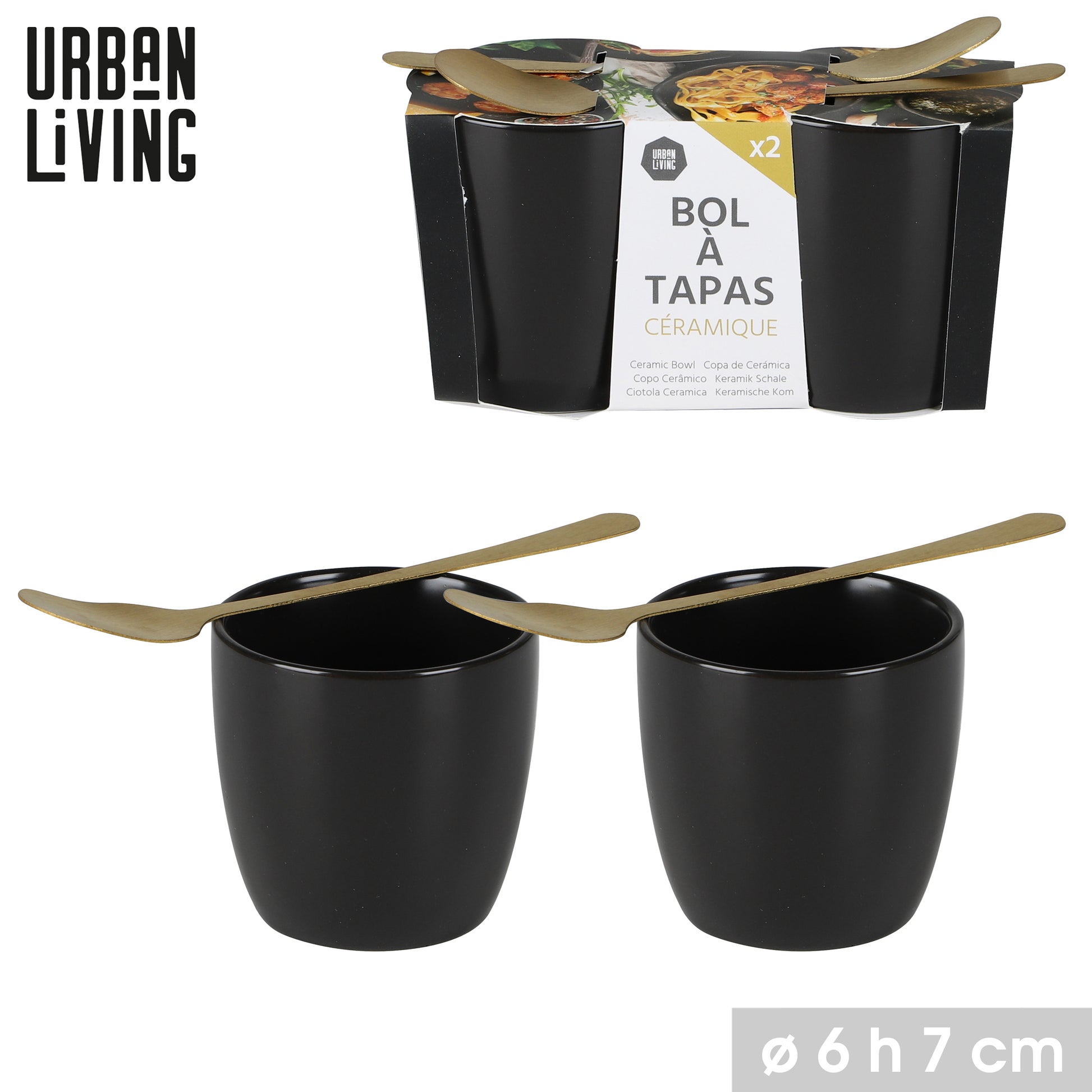 4pc Tapas Dish Bowl Ceramic & Gold Spoon