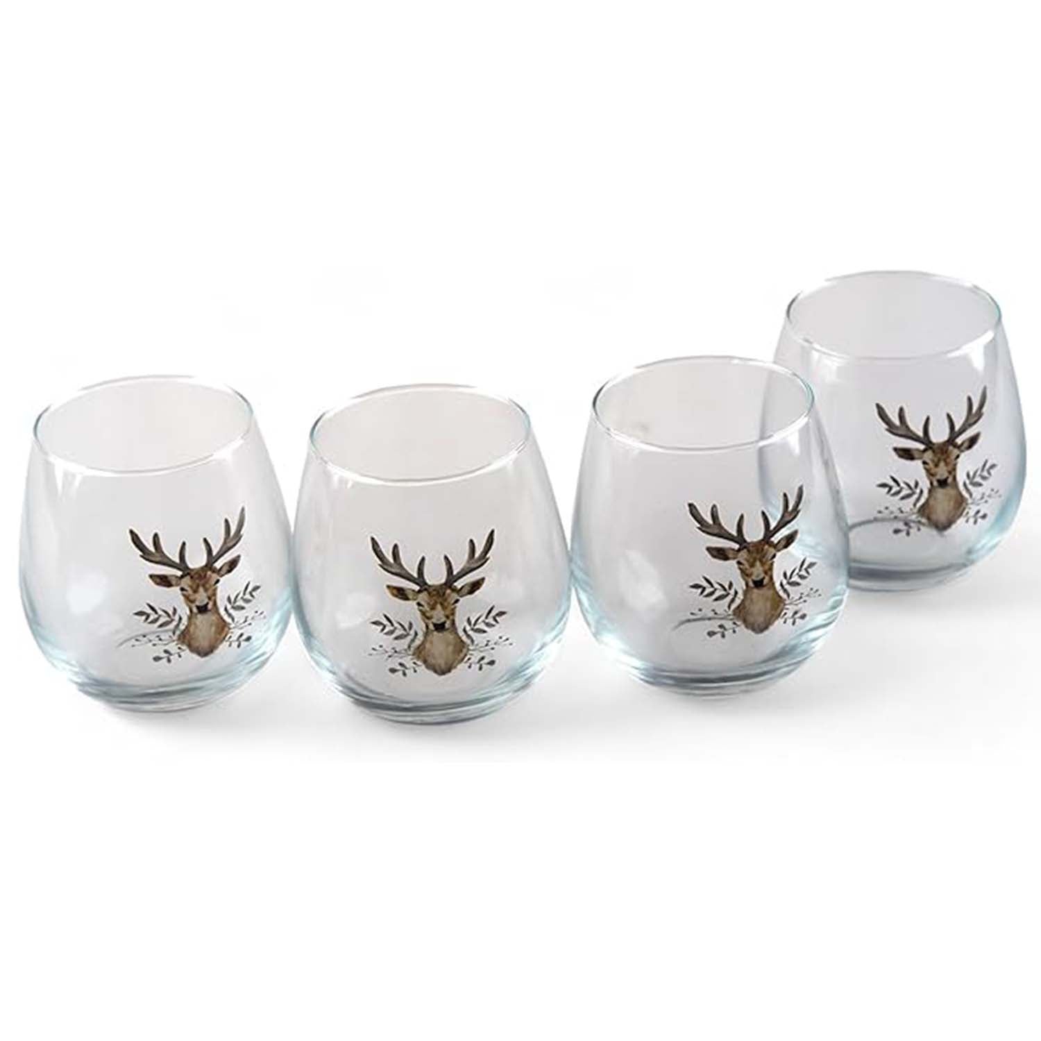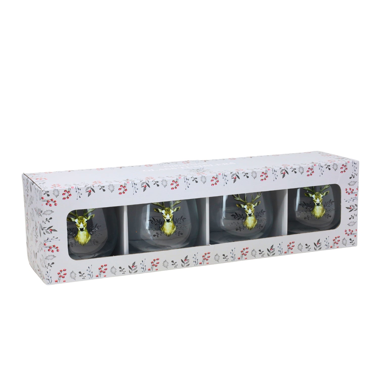 4Pcs 450ml Stag Design Christmas Glass Tumblers Set