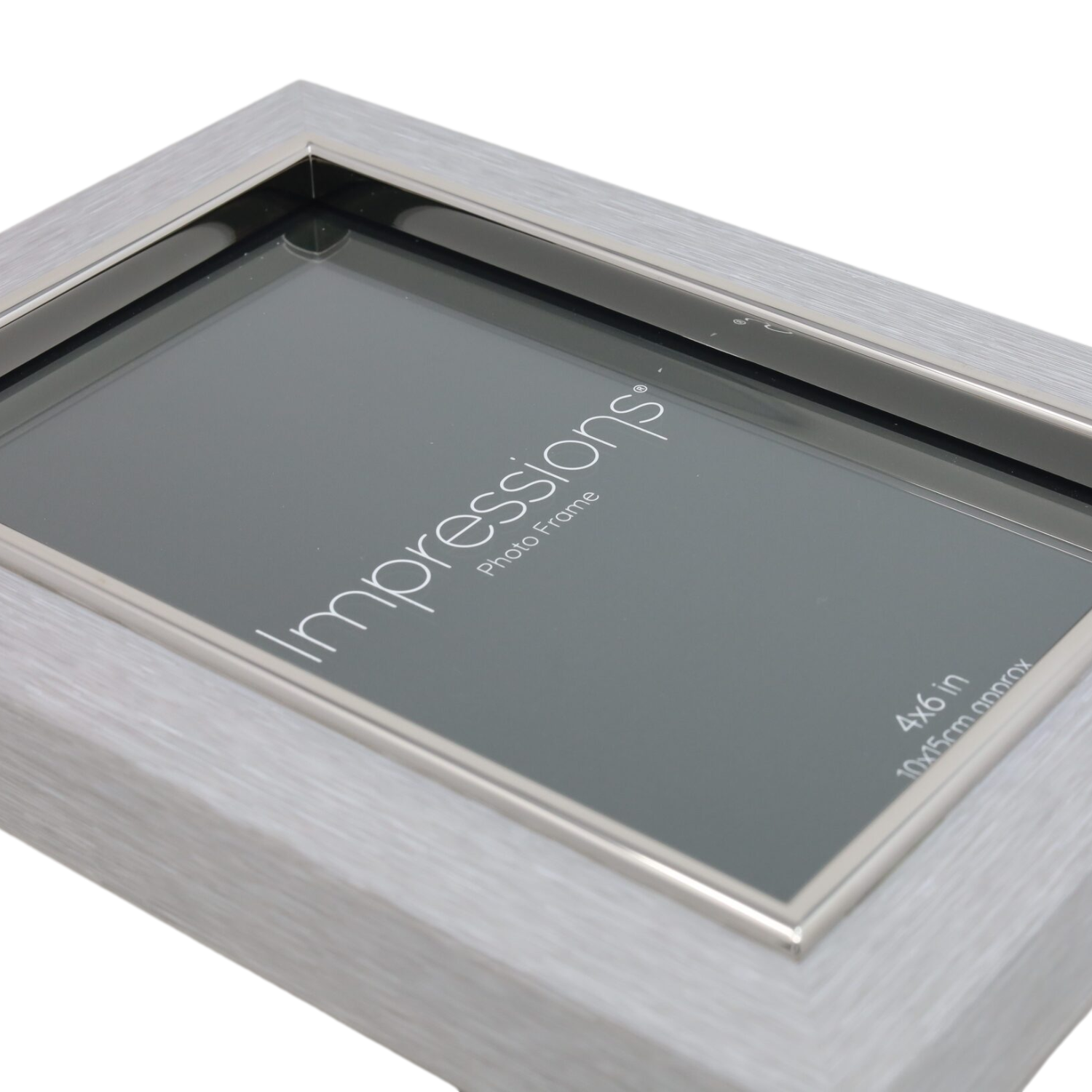 - Stylish 4x6 inch photo frame in a grey faux wood effect and silver frame finish