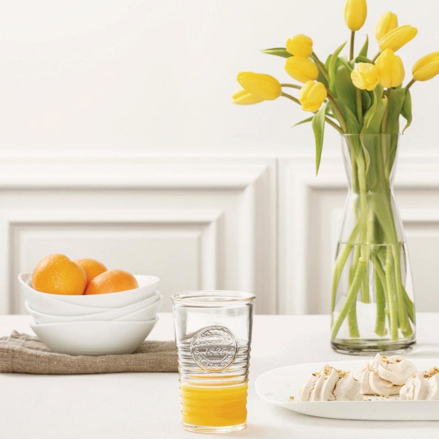 The Bormioli Rocco Tumbler combines Italian craftsmanship with timeless industrial style. Each 300 ml glass features a ribbed texture that enhances both aesthetics and grip, making it a standout piece on any table.