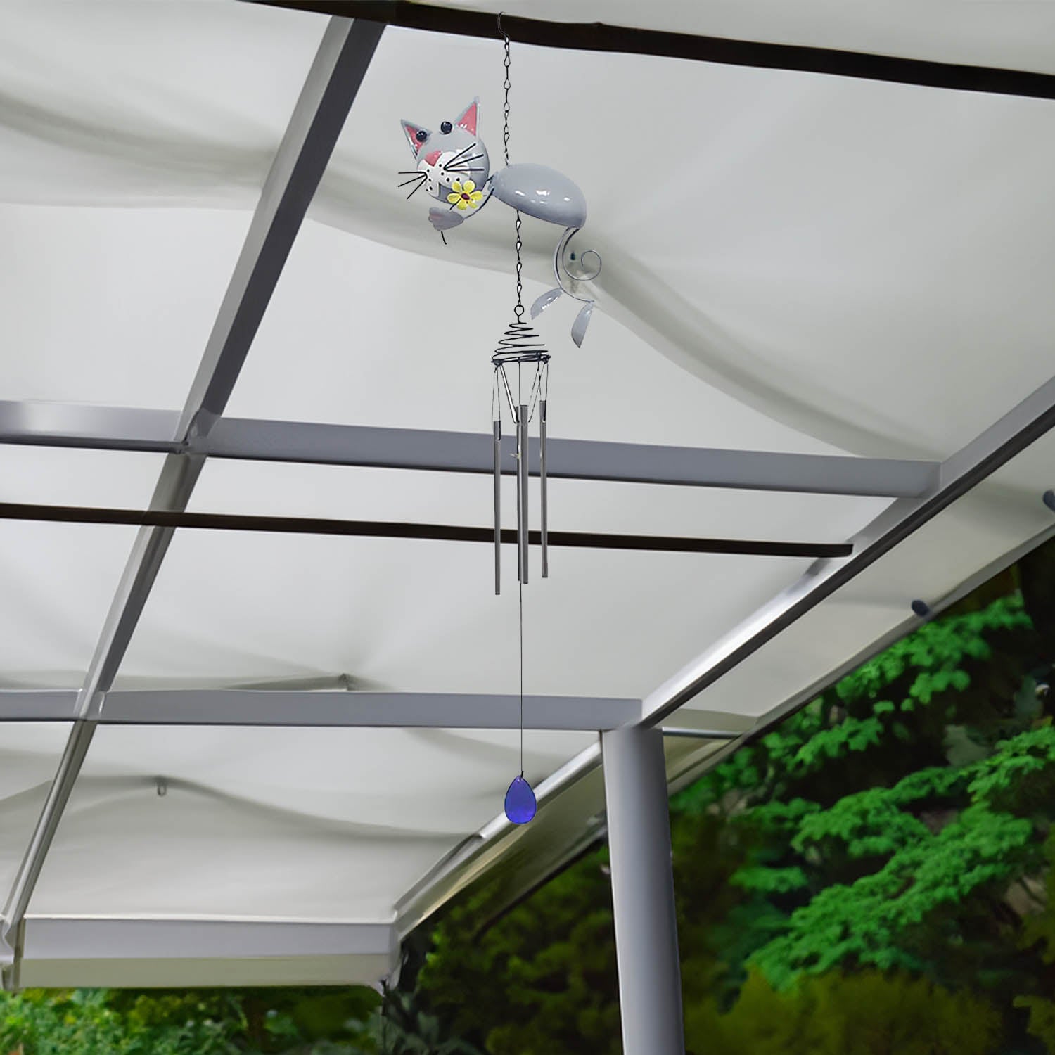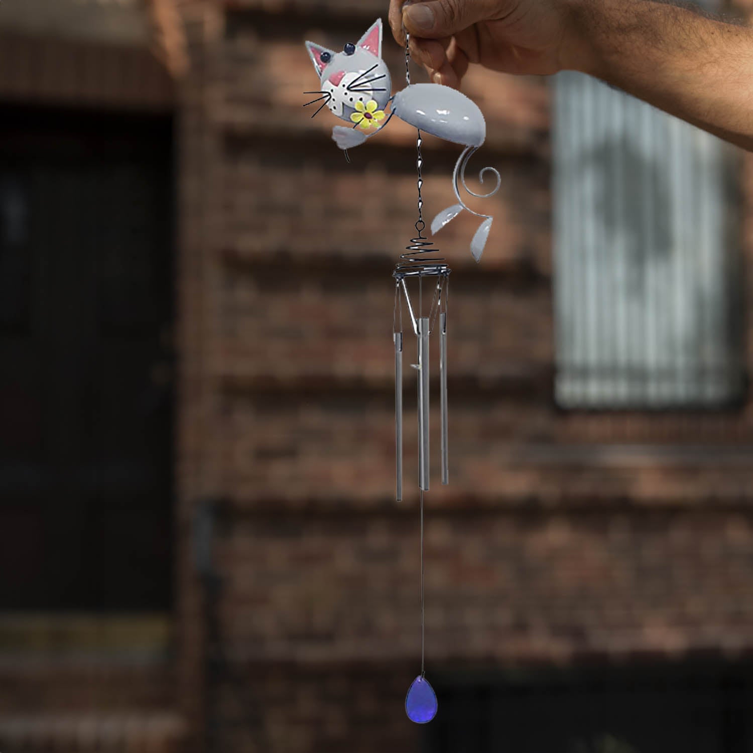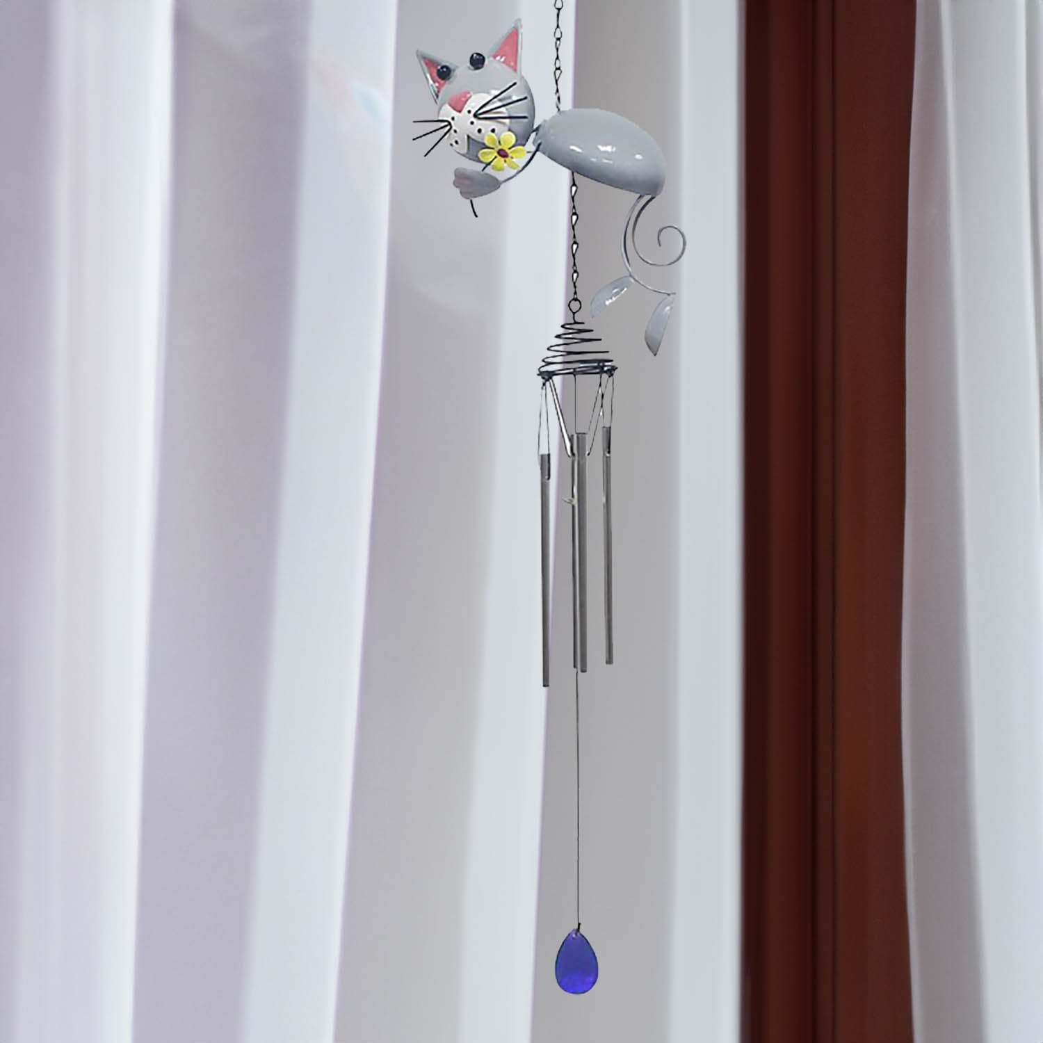 Elevate your outdoor ambiance with our set of metal wind chimes featuring an adorable grey cat figurine and hanging blue trinket. Easy to hang and designed for durability, this set of 4 wind chimes is a perfect addition to your garden, patio, or any outdoor space, bringing both visual and auditory delight to your outdoor haven.