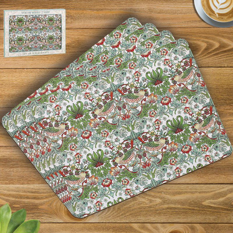 4pcs Floral W.Morris Strawberry Thief Cork Placemats