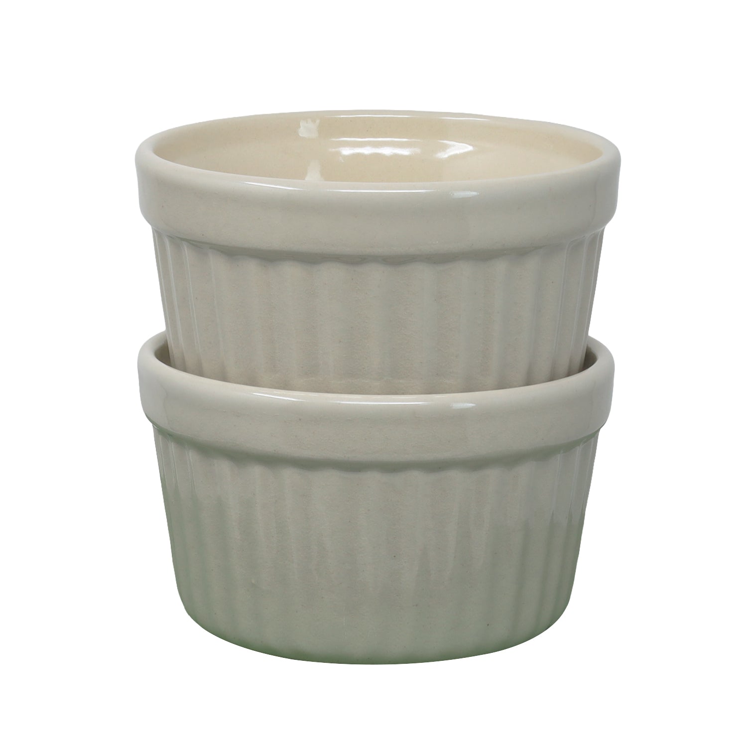 4Pcs Grey Ramekin Bowl Porcelain Fluted Souffle Dish