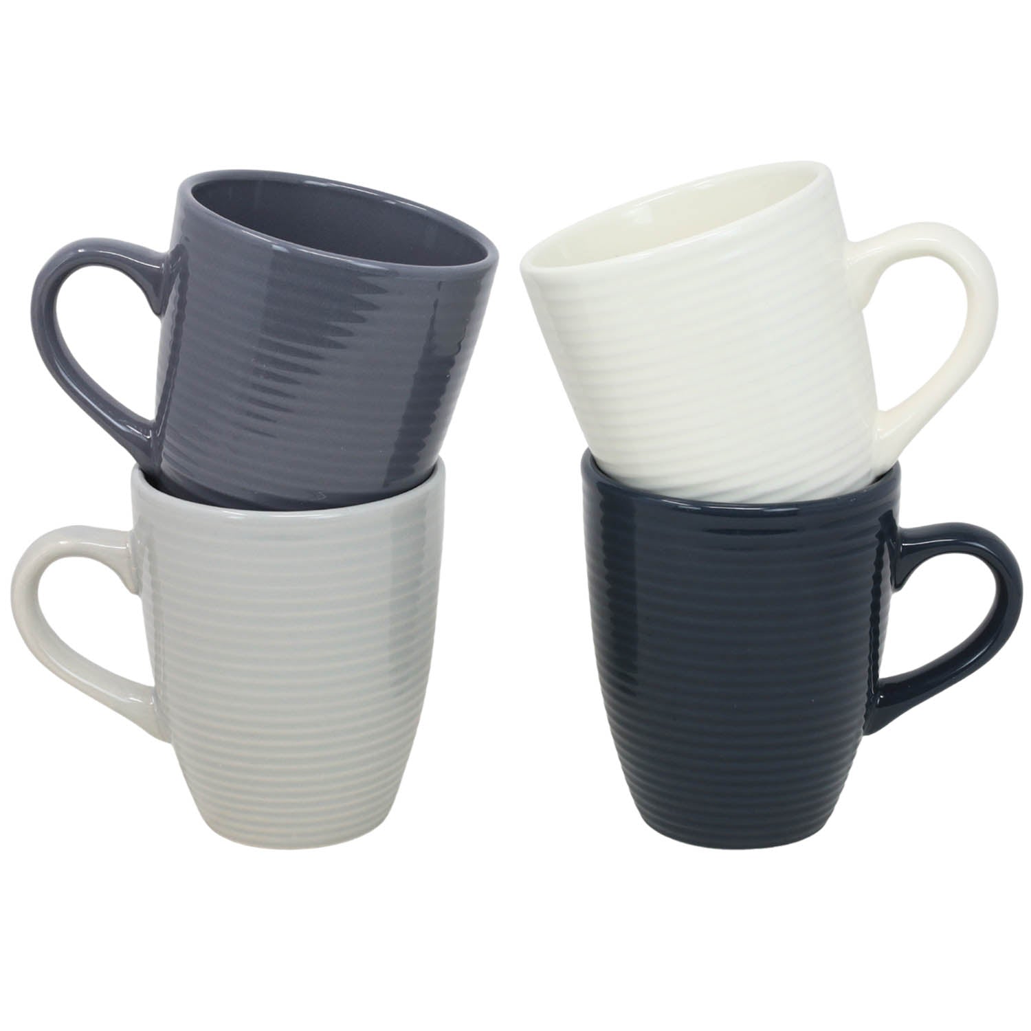 Sit back and have a cuppa with our fabulous textured mug set. Made from durable stoneware these mugs are great value and feature a subtle ripple texture. Each set has four varying shades of grey tones.