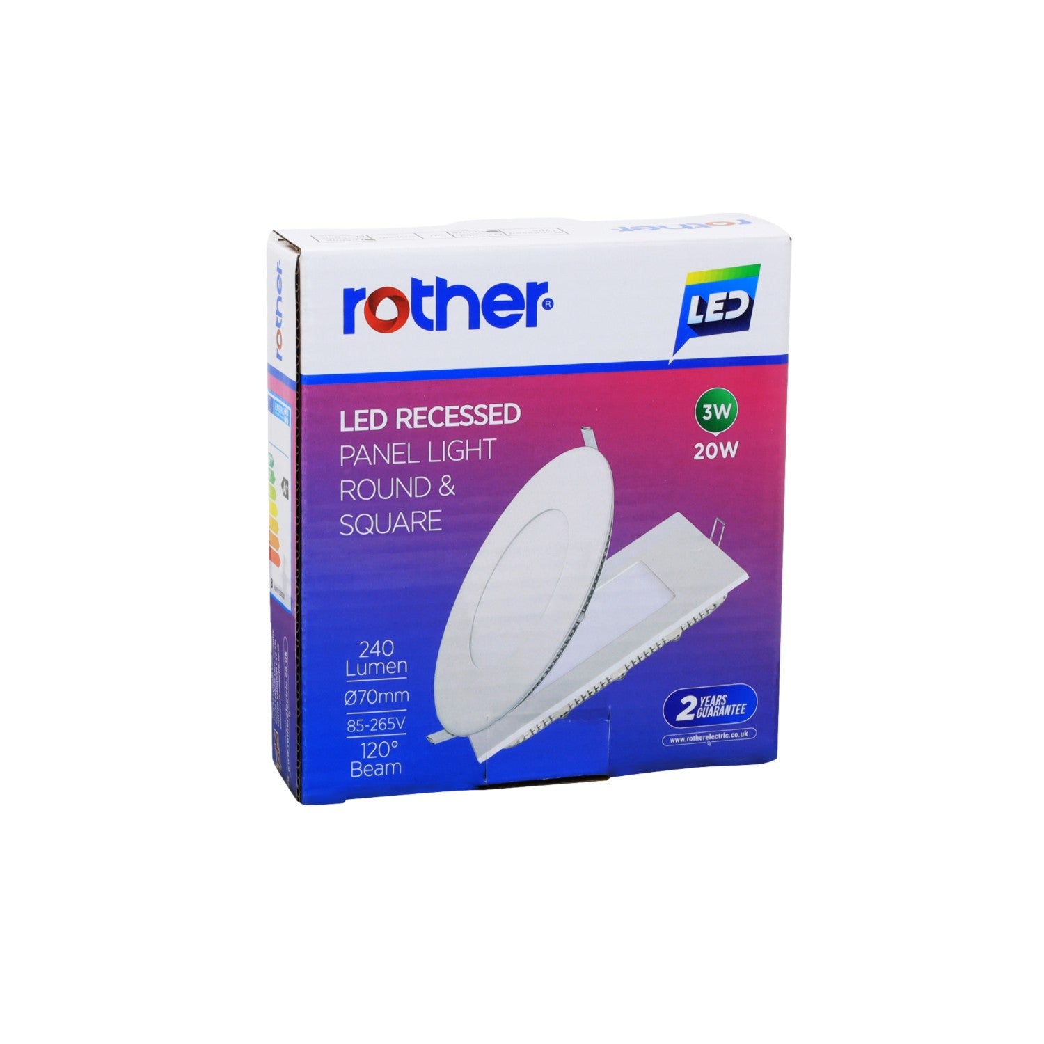 The Rother square LED recessed panel light is an energy-efficient lighting solution designed for sleek and modern interiors. Consuming only 3W of power while delivering 240 lumens, it serves as an excellent replacement for traditional 20W bulbs. Its wide voltage compatibility (85–265V) ensures flexibility for various electrical setups. With a 120° beam angle, it provides even light distribution, making it ideal for homes, offices, and commercial spaces.