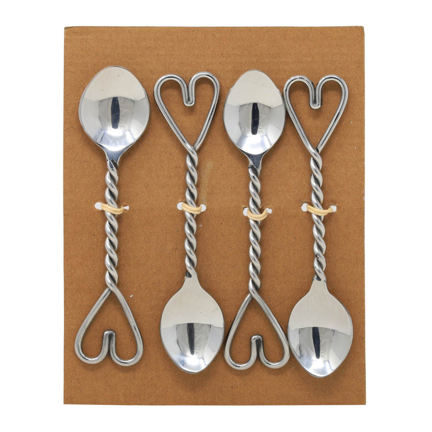 A gorgeous set of 4 spoons with hand-forged twisted stems and a heart end. This set of heart-shaped spoons is very suitable as a gift for family, colleagues, and friends on Valentine's Day, birthday parties, Christmas, and anniversaries.